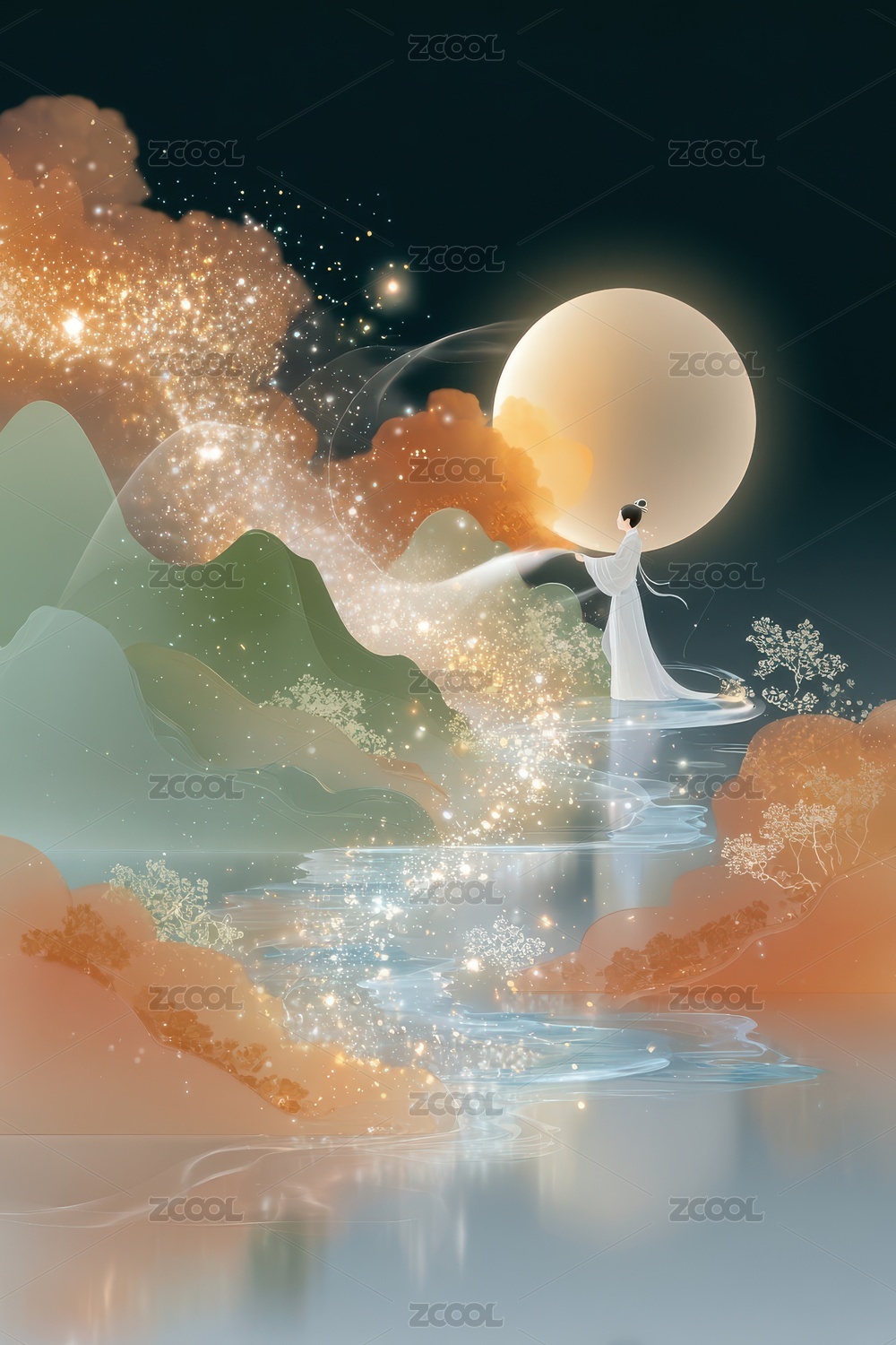建筑,梦幻,云雾,人物,仙境,流光,白鹤,金线