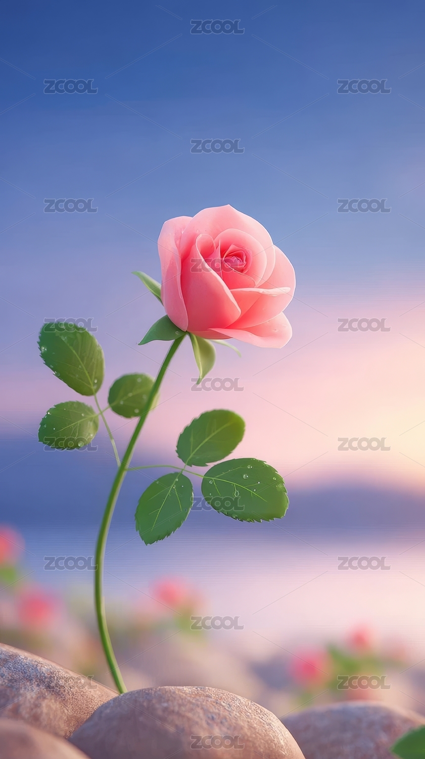 幻粉玫瑰绽,光缕缠萦绘幽境