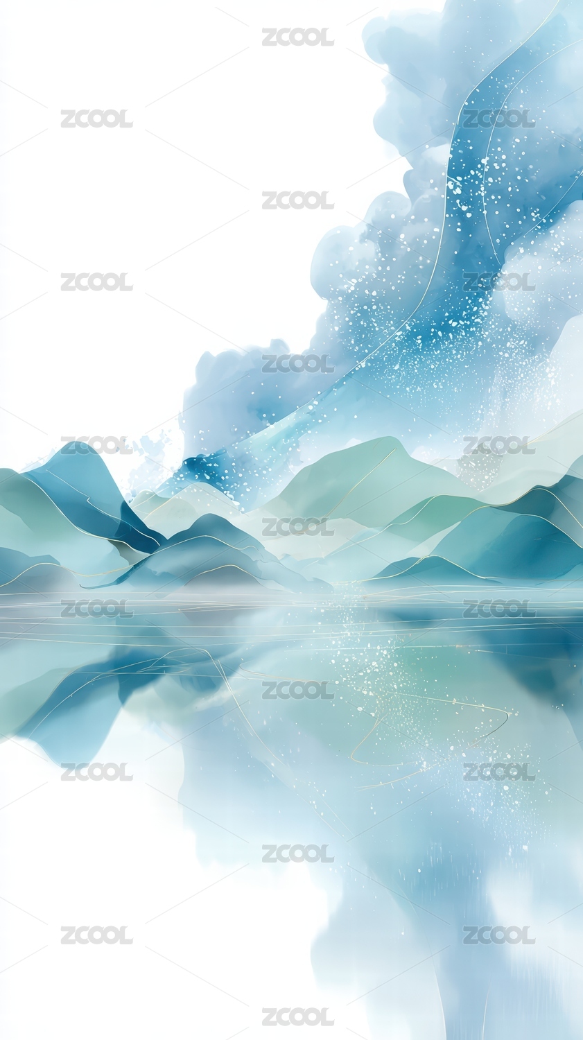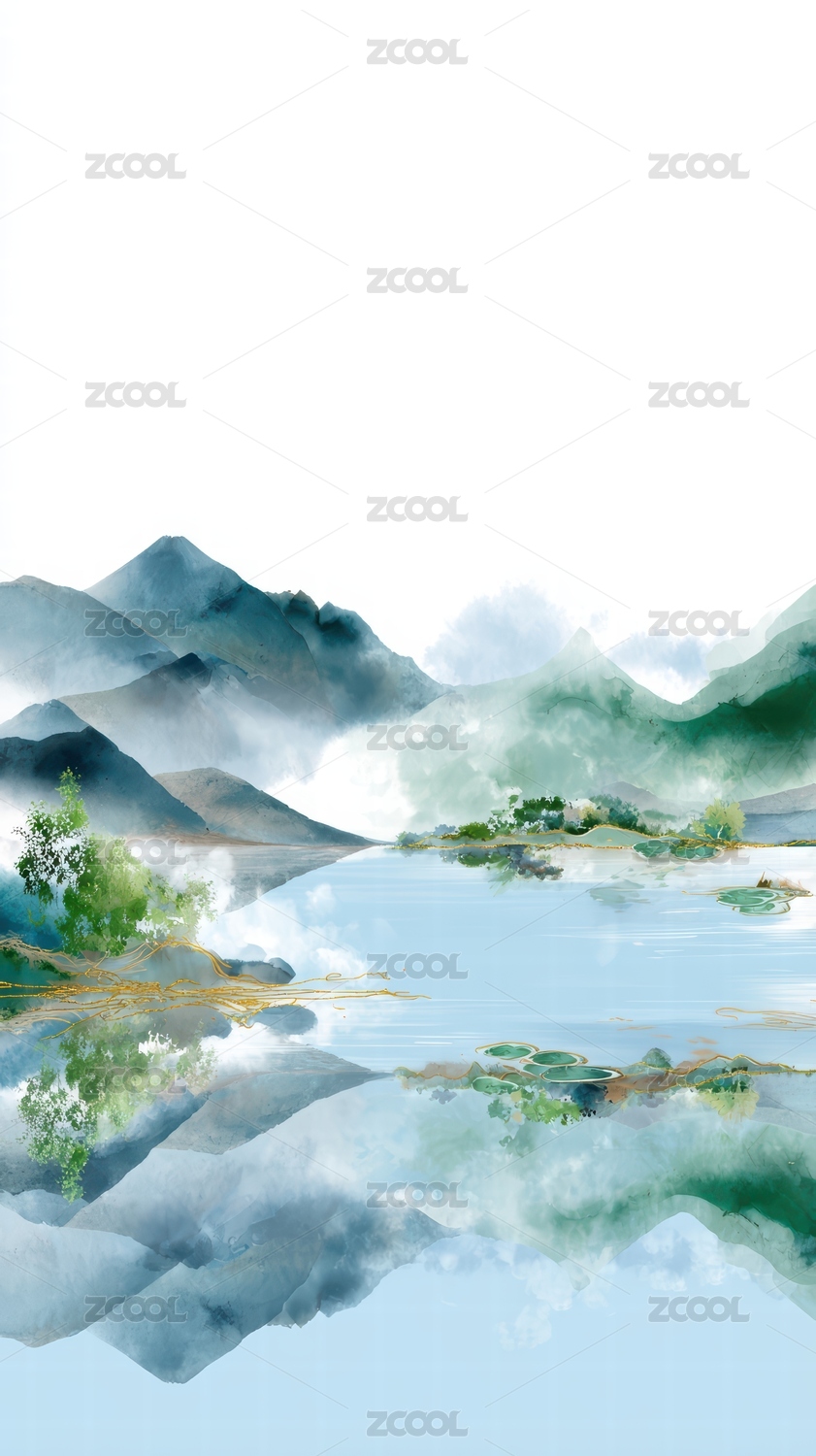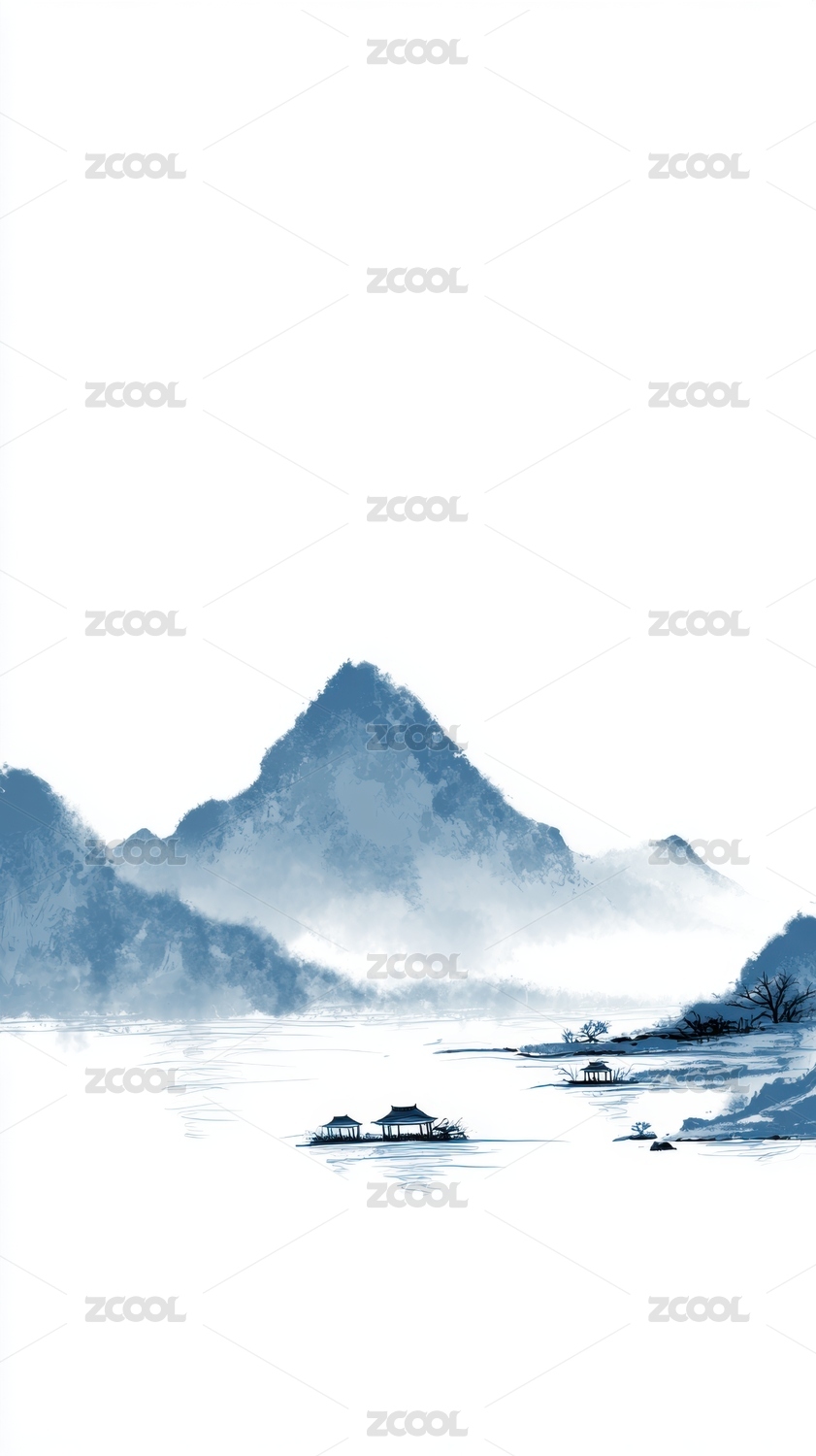 手绘中国风意境山水画 风景插画背景