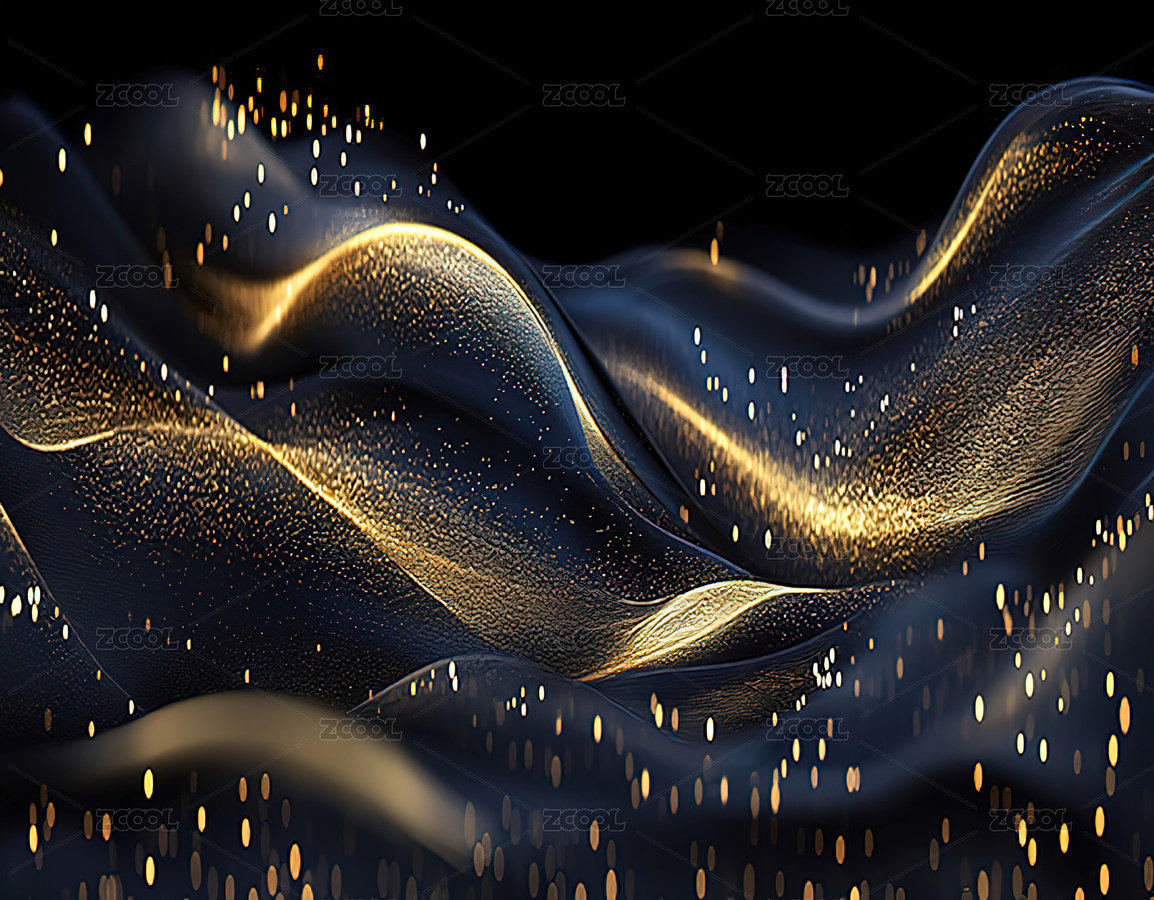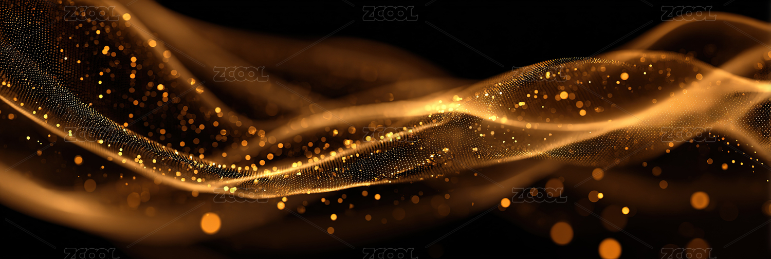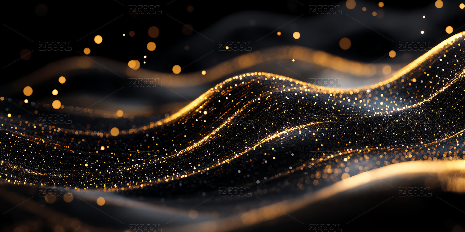 金色波浪与光点的抽象背景