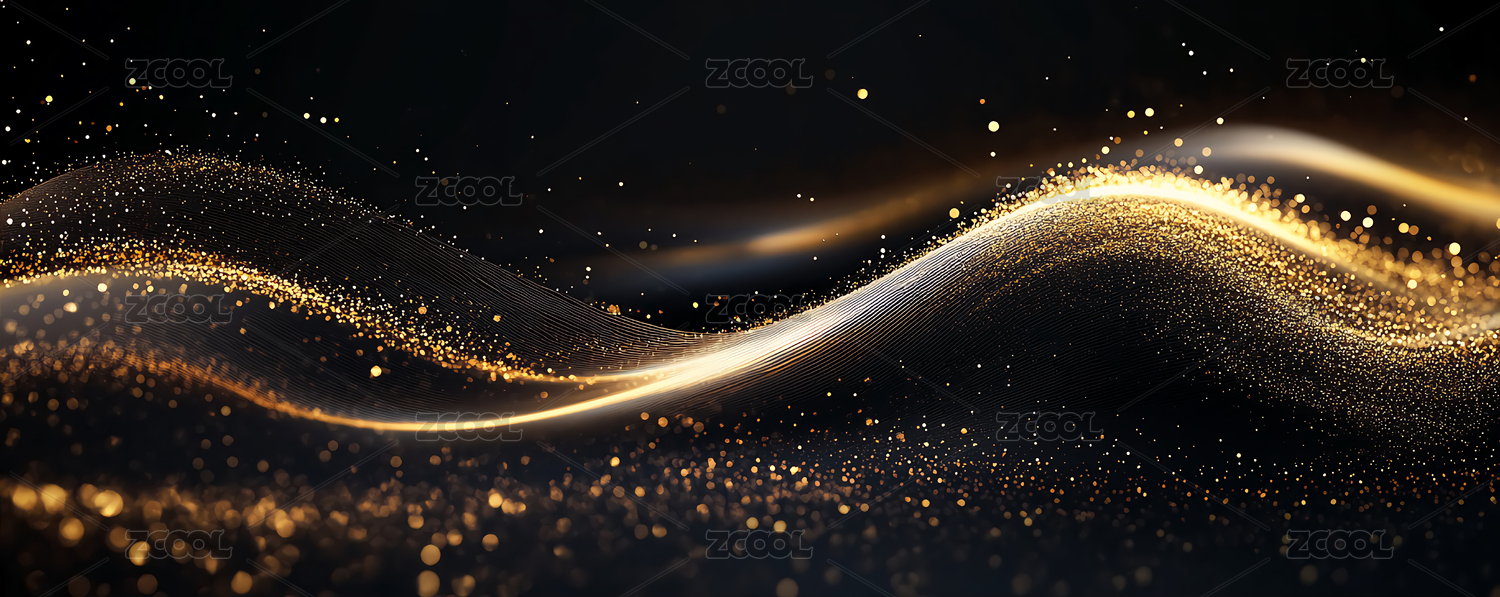 金色波浪与闪烁粒子的抽象艺术