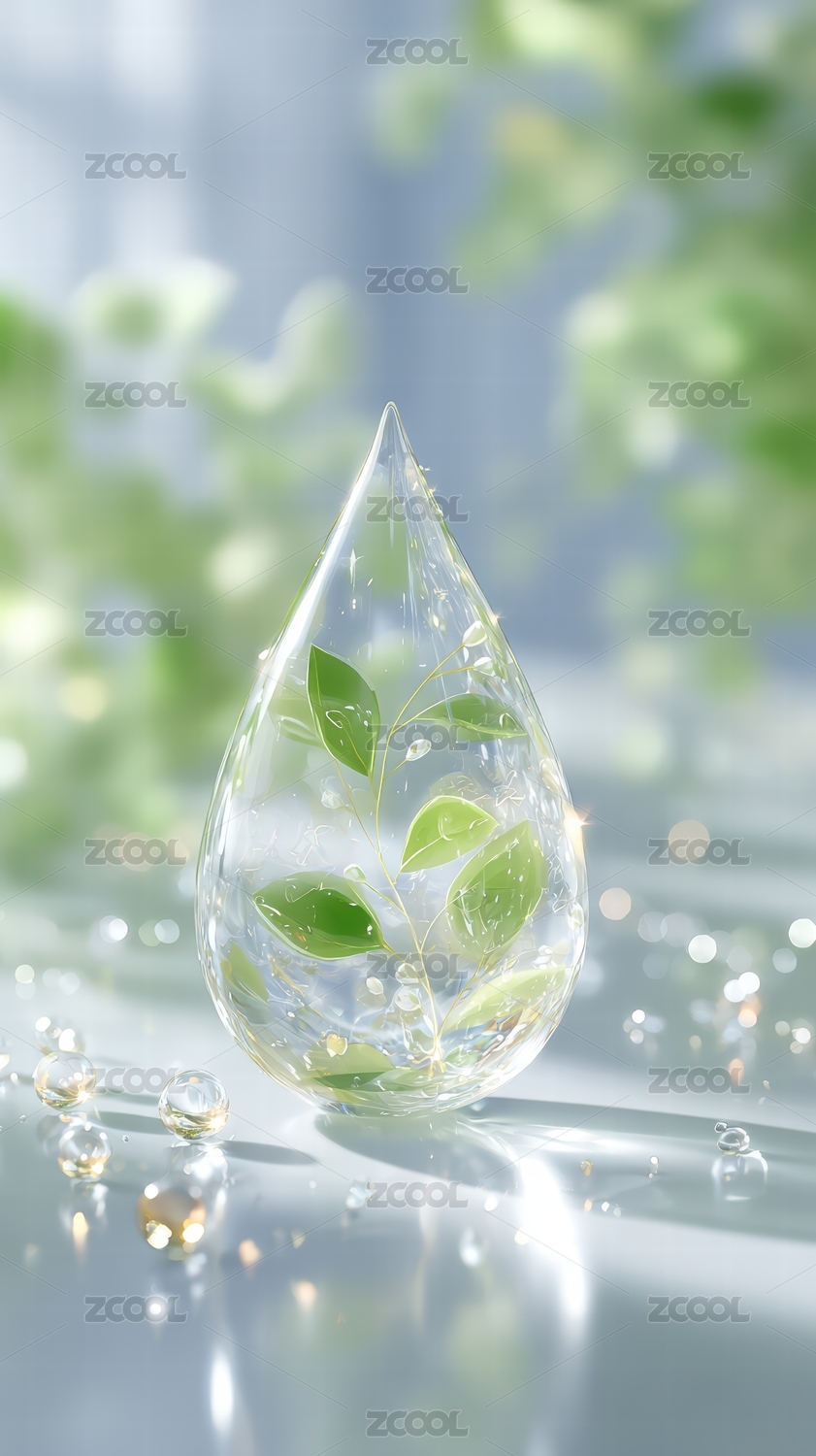 水滴中的绿色生命象征
