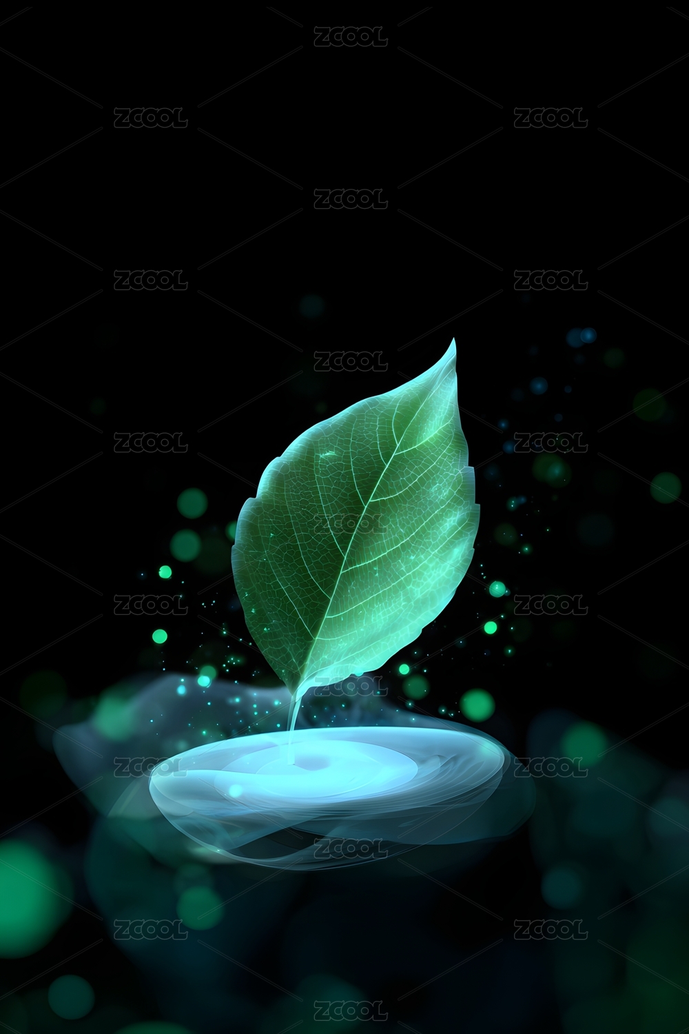 背景,科技,自然,绿叶,未来,圆环,光点,水滴