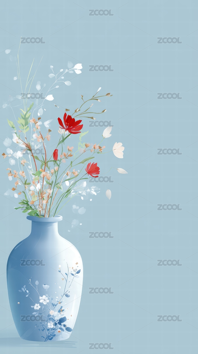 青花瓷瓶中的花艺静谧之美