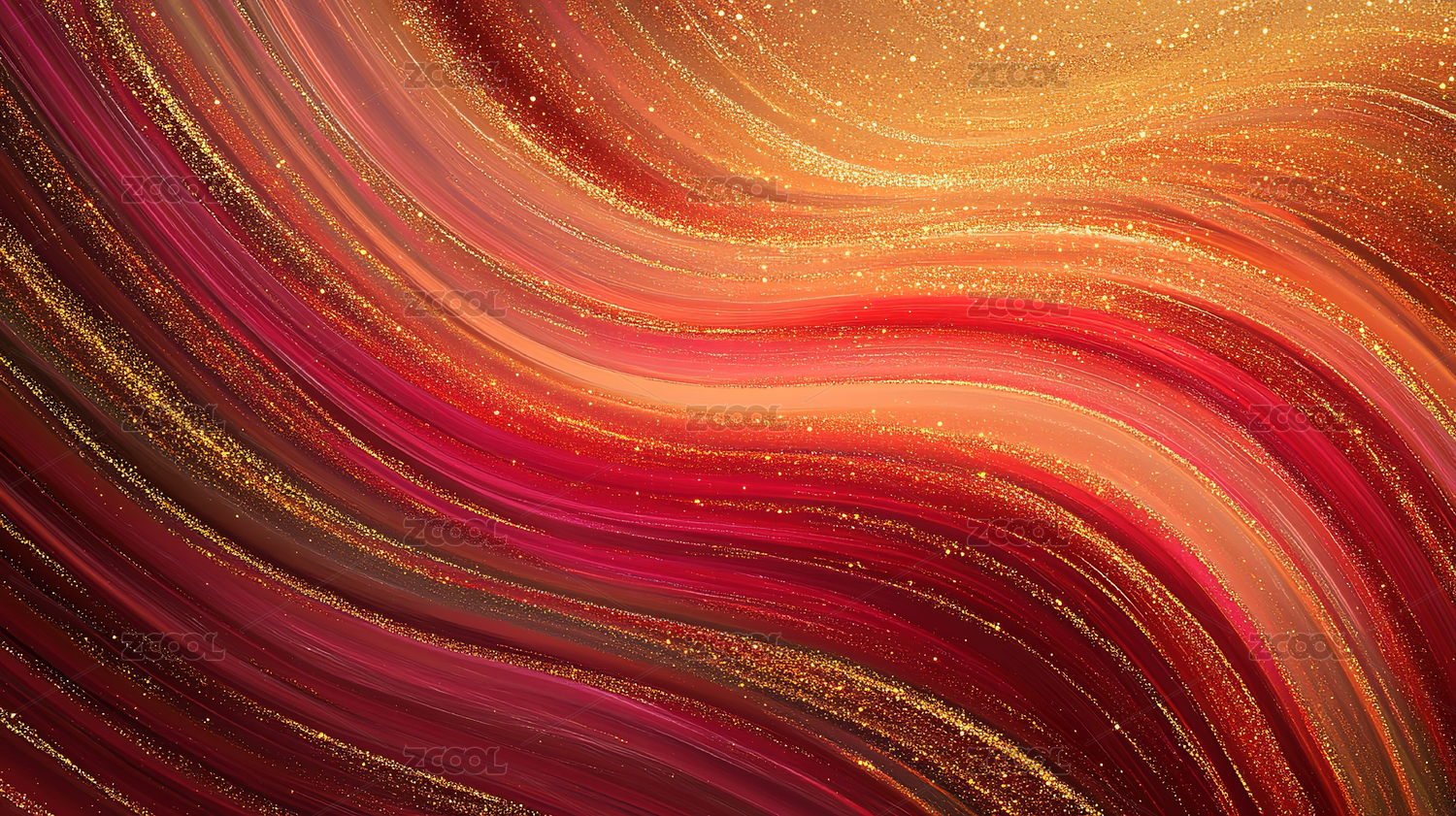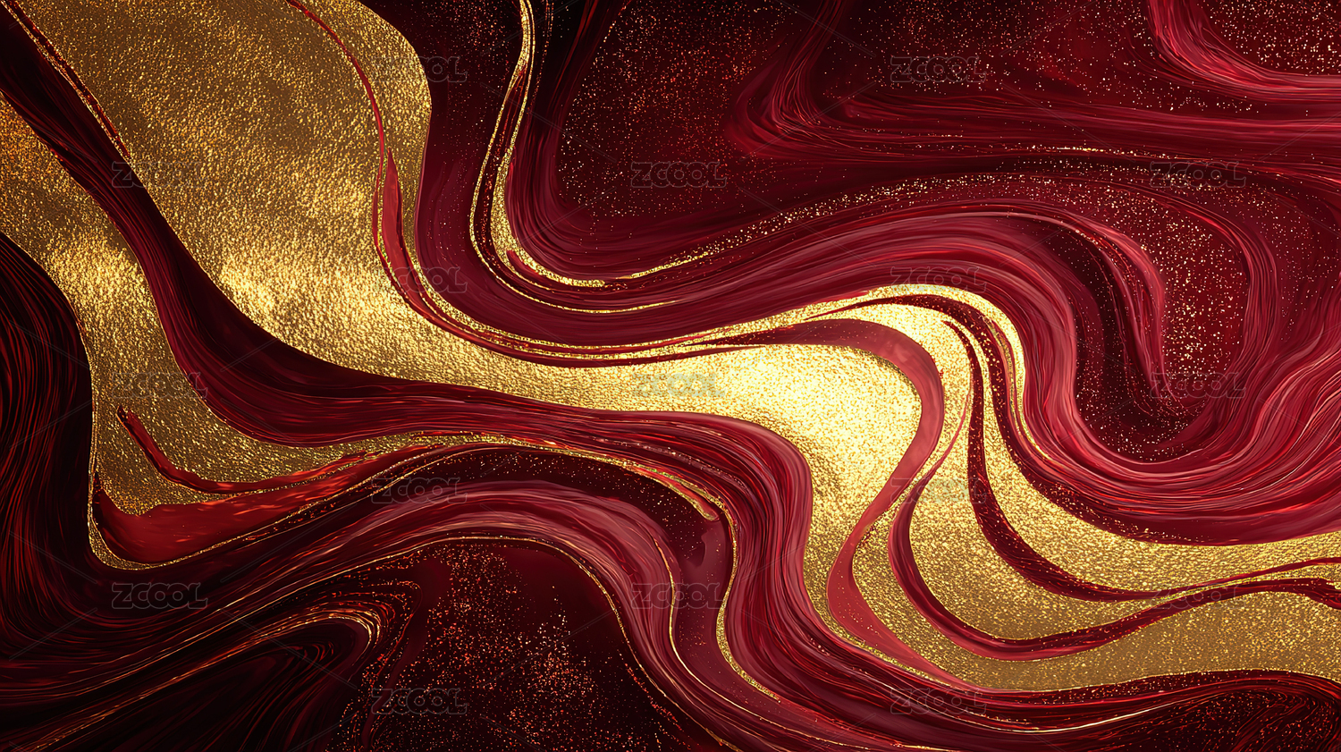 红色与金色交织的抽象波纹图案