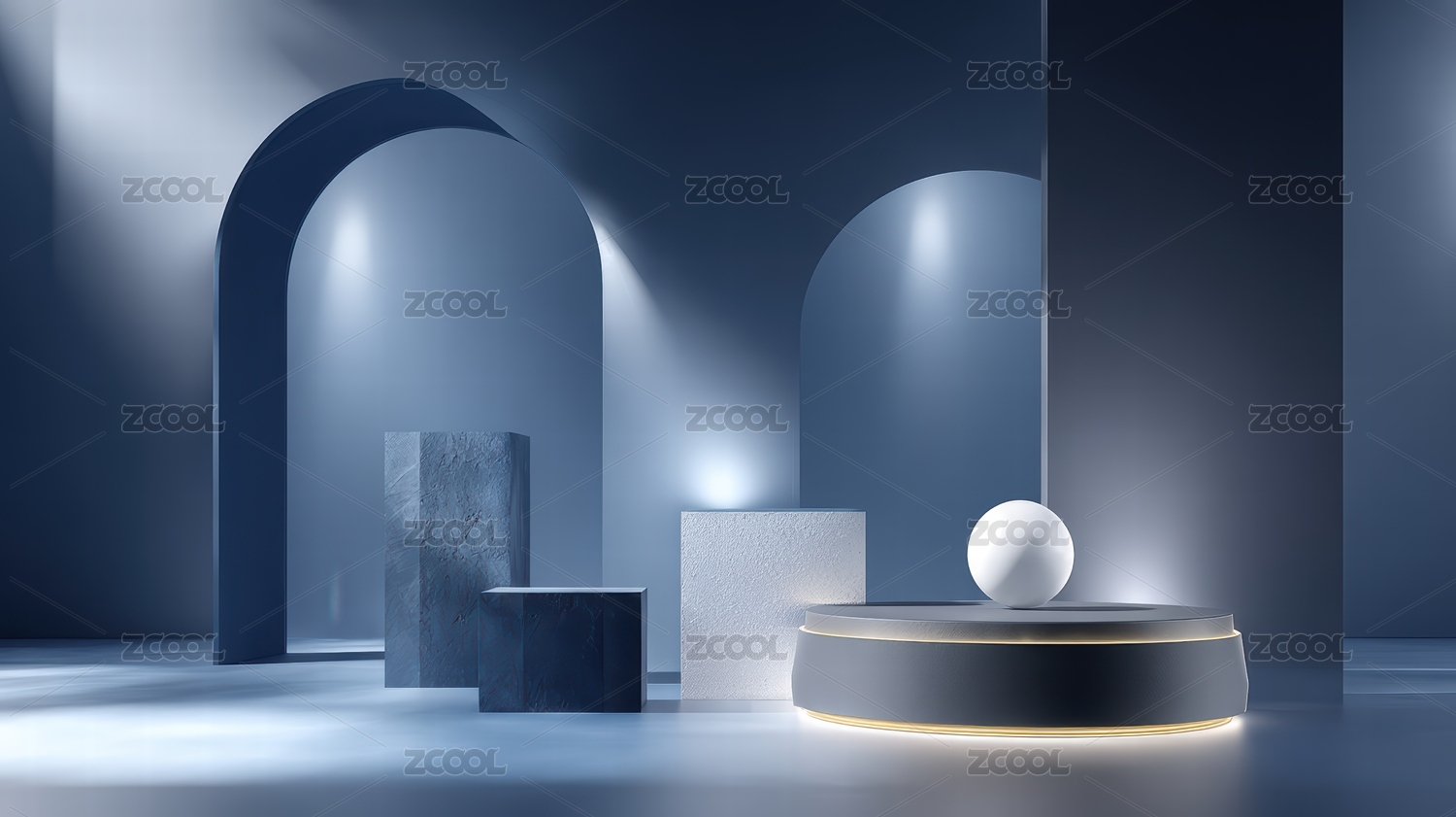 蓝色背景下的几何造型场景