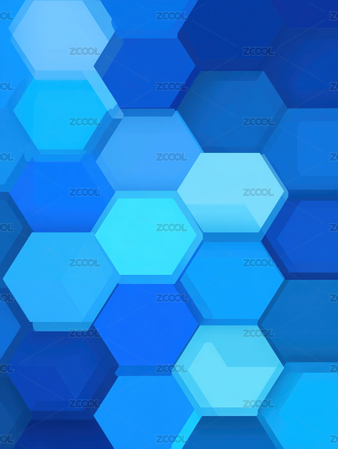 蓝色渐变六边形抽象图案
