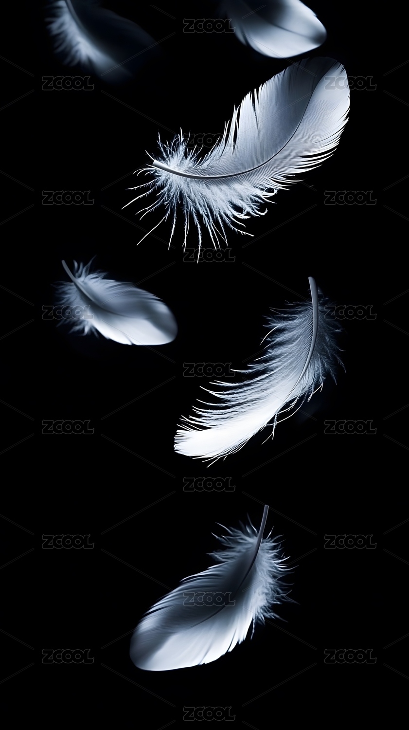 黑底白羽轻盈飘落 艺术摄影宁静氛围