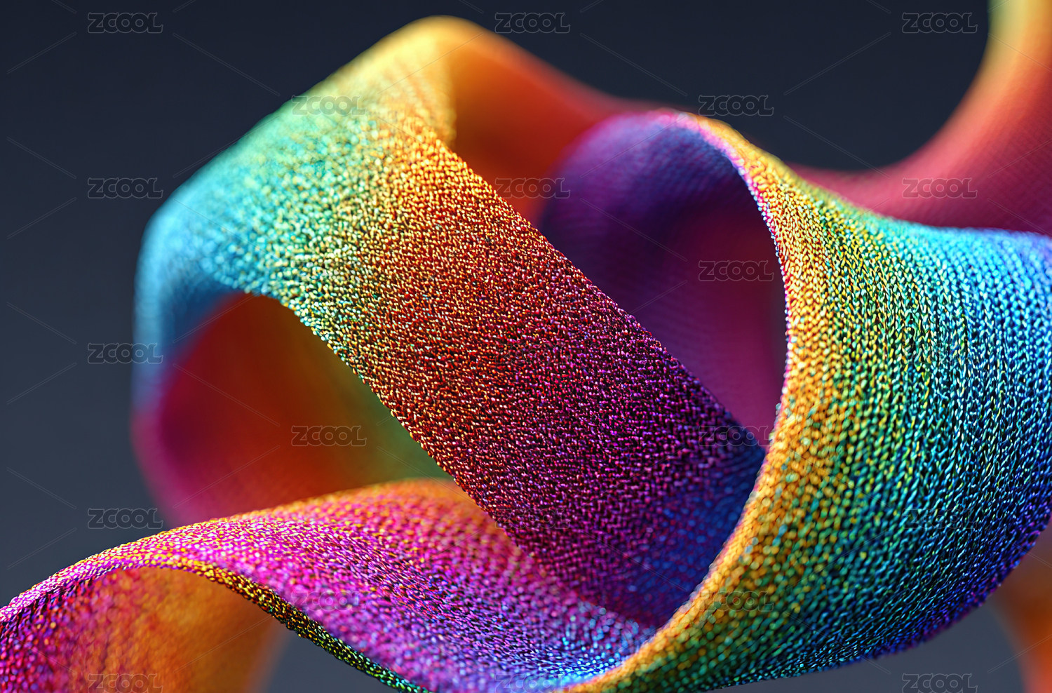 彩虹色扭曲丝带的特写
