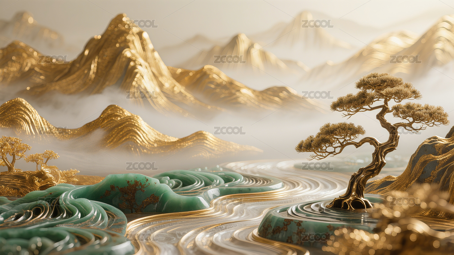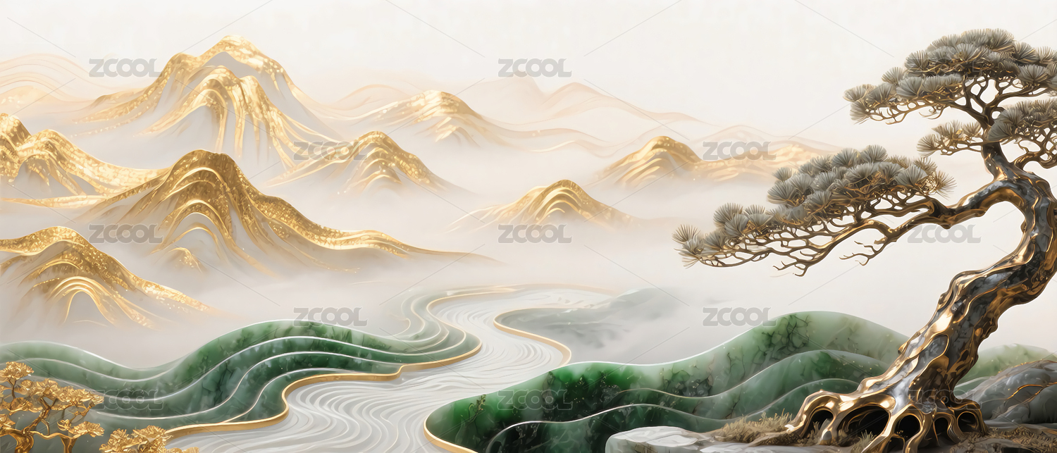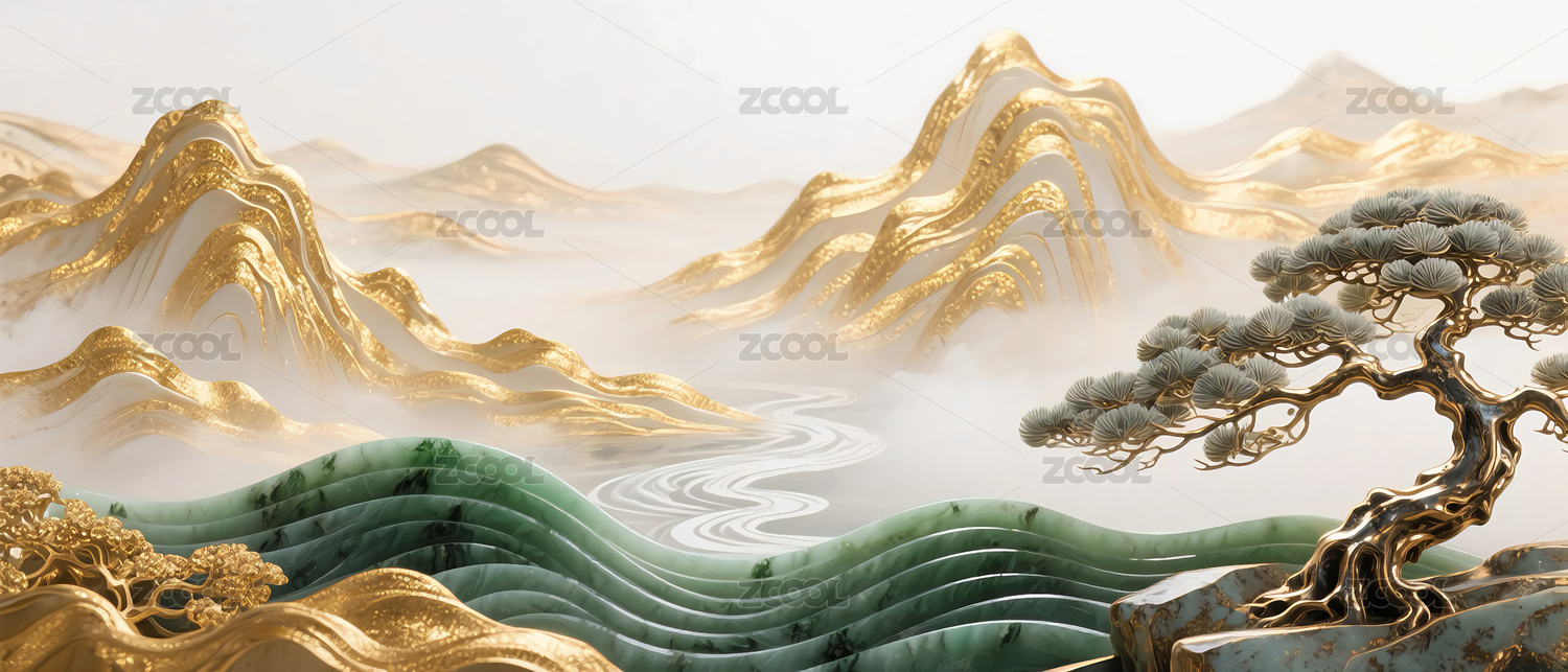 高山,云雾,背景,壁纸,水墨画,抽象,天空,波纹线,流动,艺术