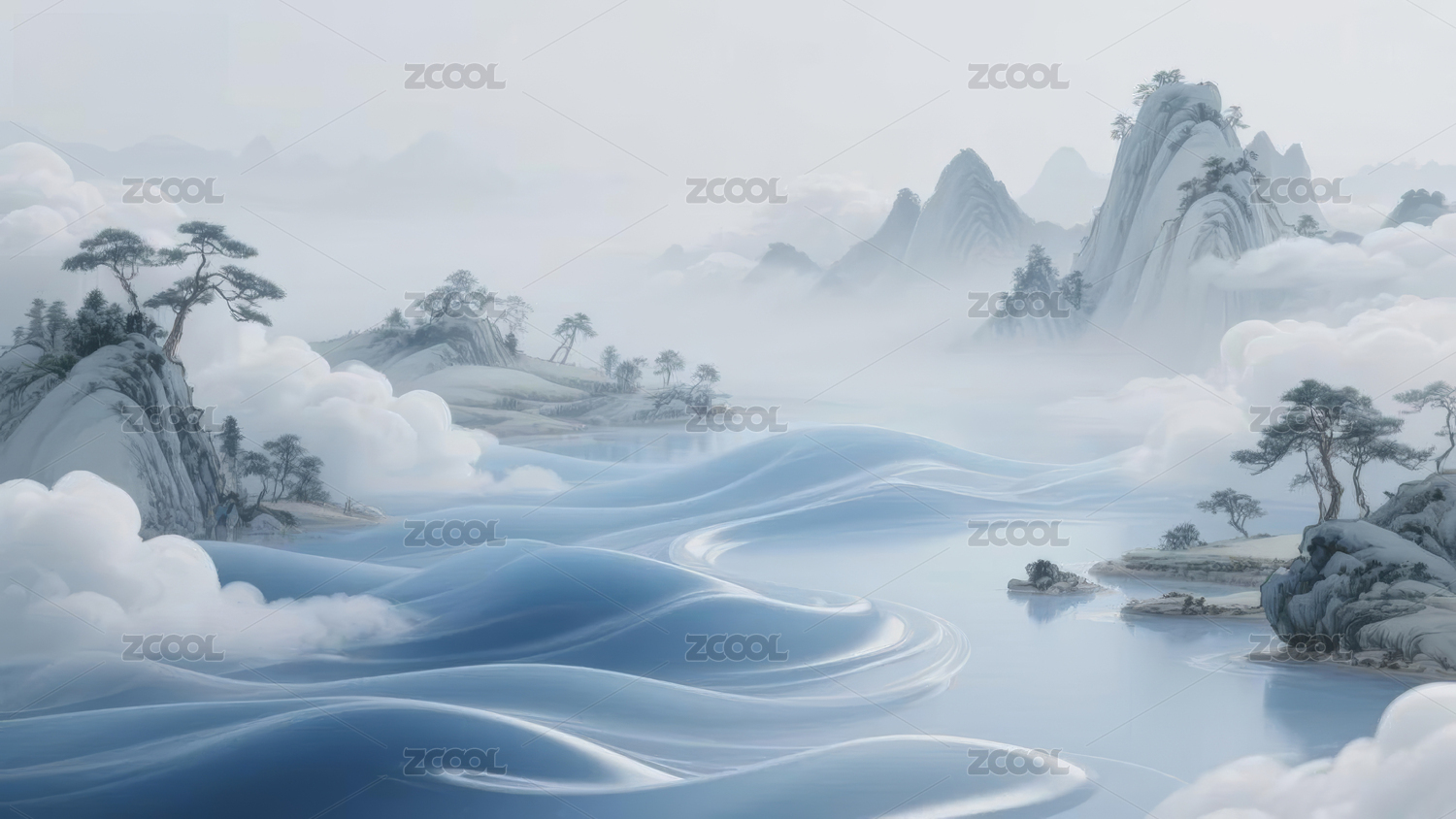 高山,云雾,背景,壁纸,水墨画,抽象,天空,波纹线,流动,艺术