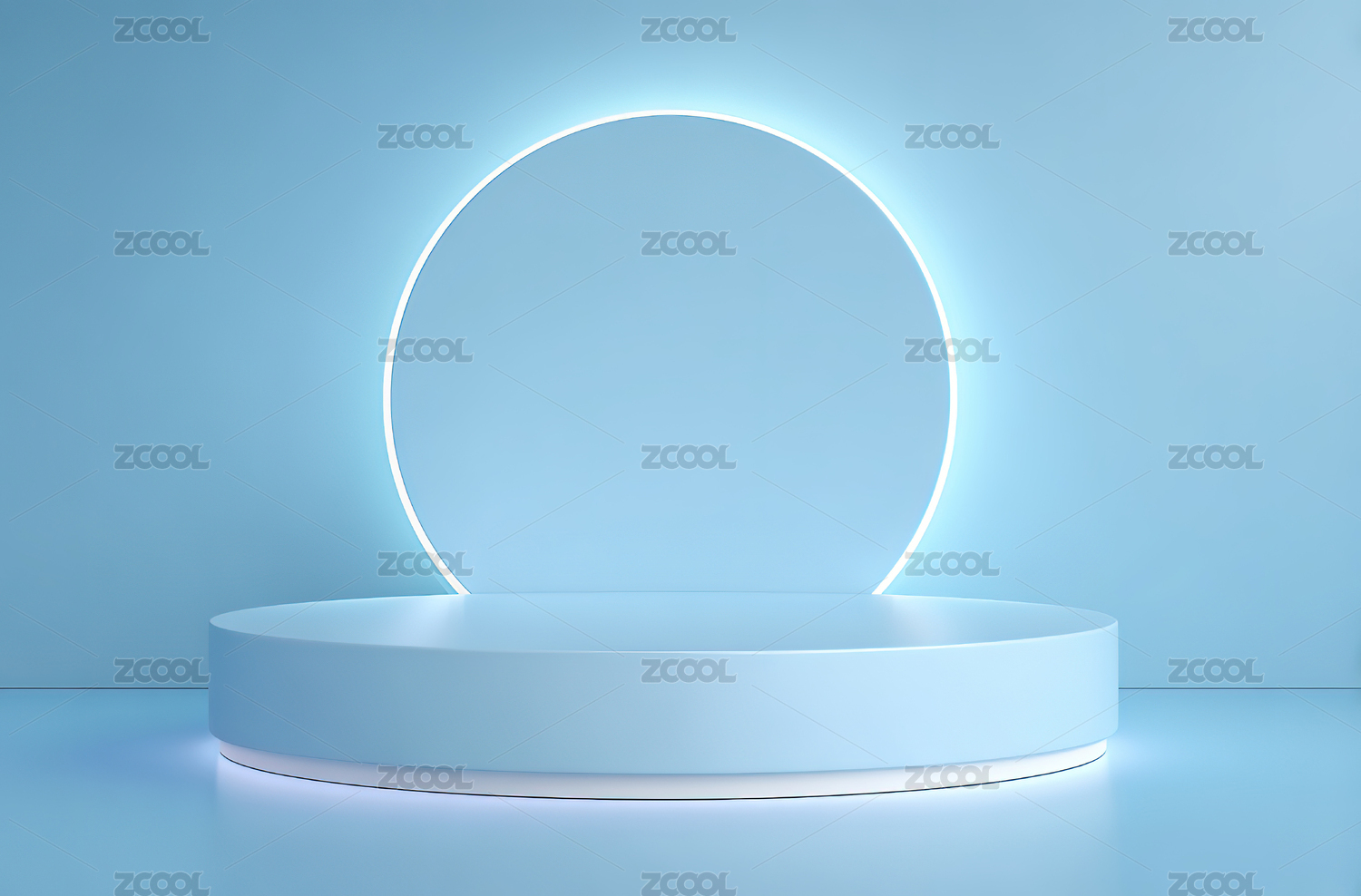 蓝色背景下的圆形展台