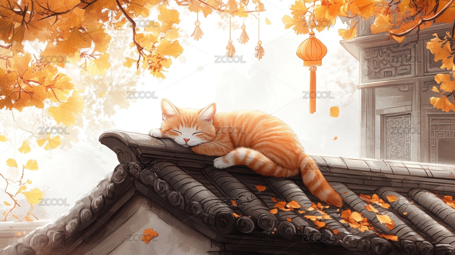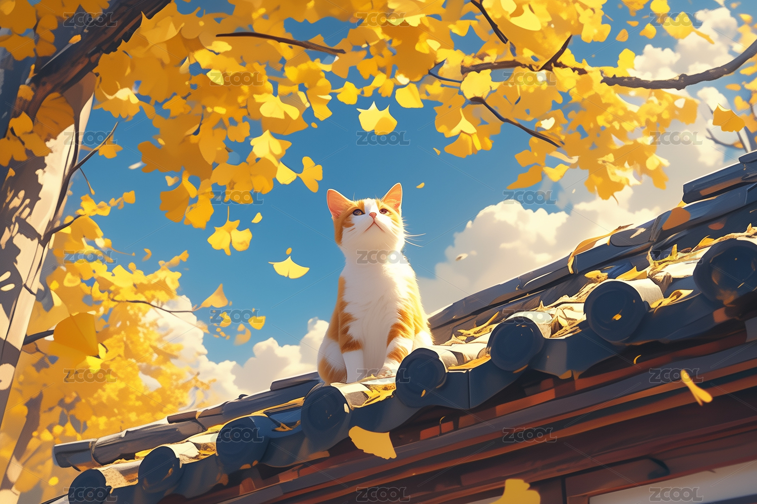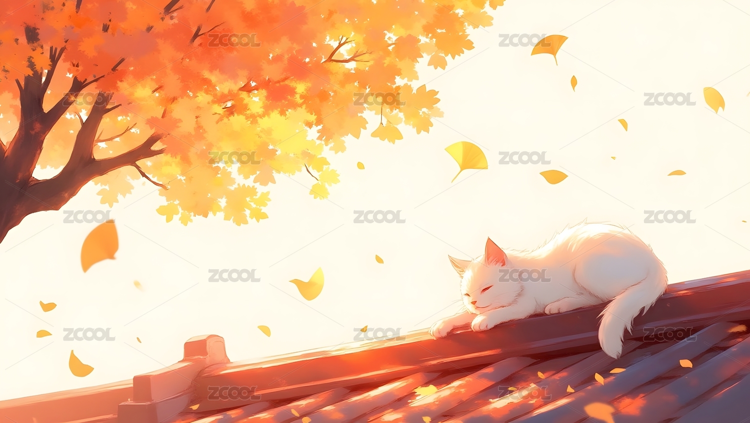 秋天立秋秋分动物宠物萌宠卡通漫画插画