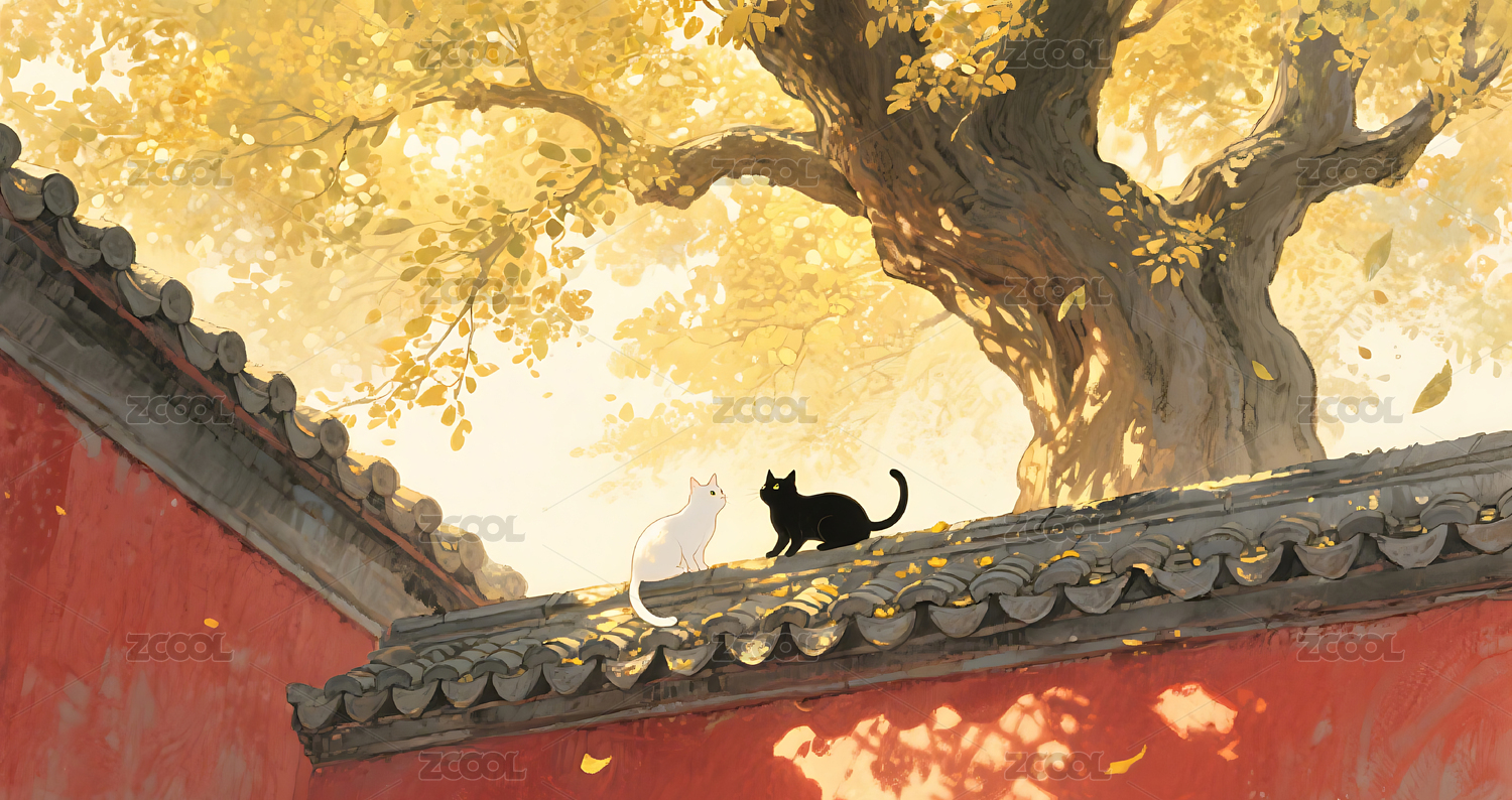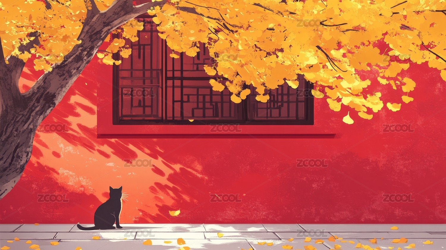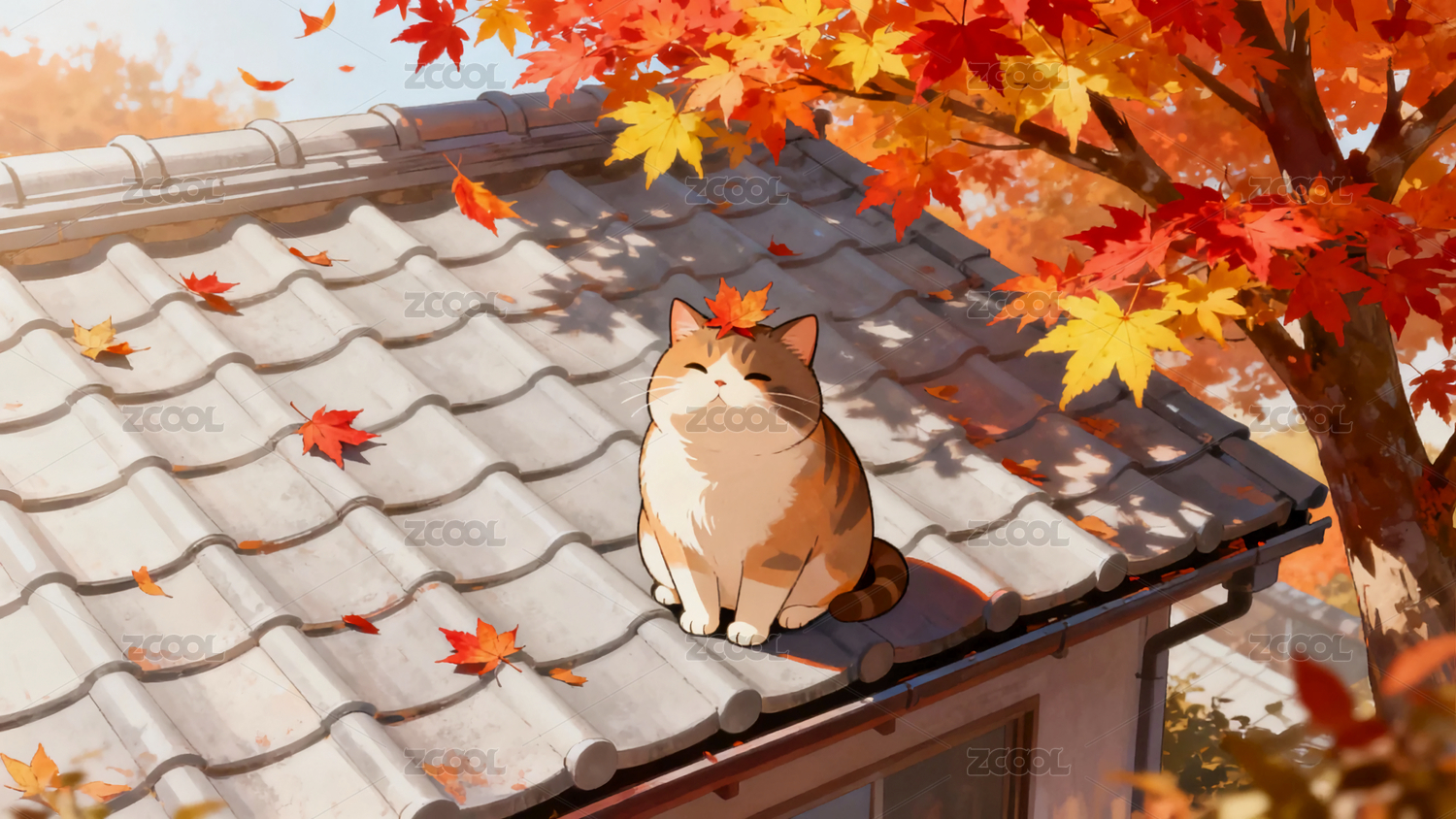 秋天立秋秋分动物宠物萌宠卡通漫画插画