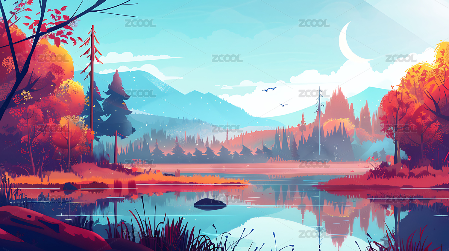秋季,立秋,秋分,节气,自然,树木,草地,远山,风景,橙色