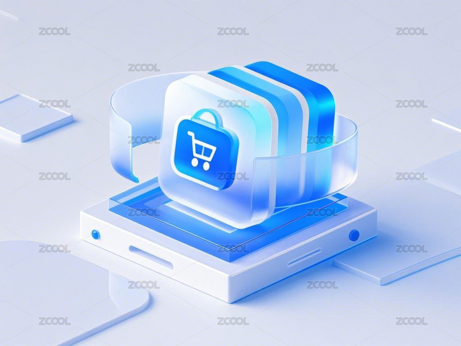 蓝色,虚拟,科技感,透明,现代,图标,简约,动态,创意,购物