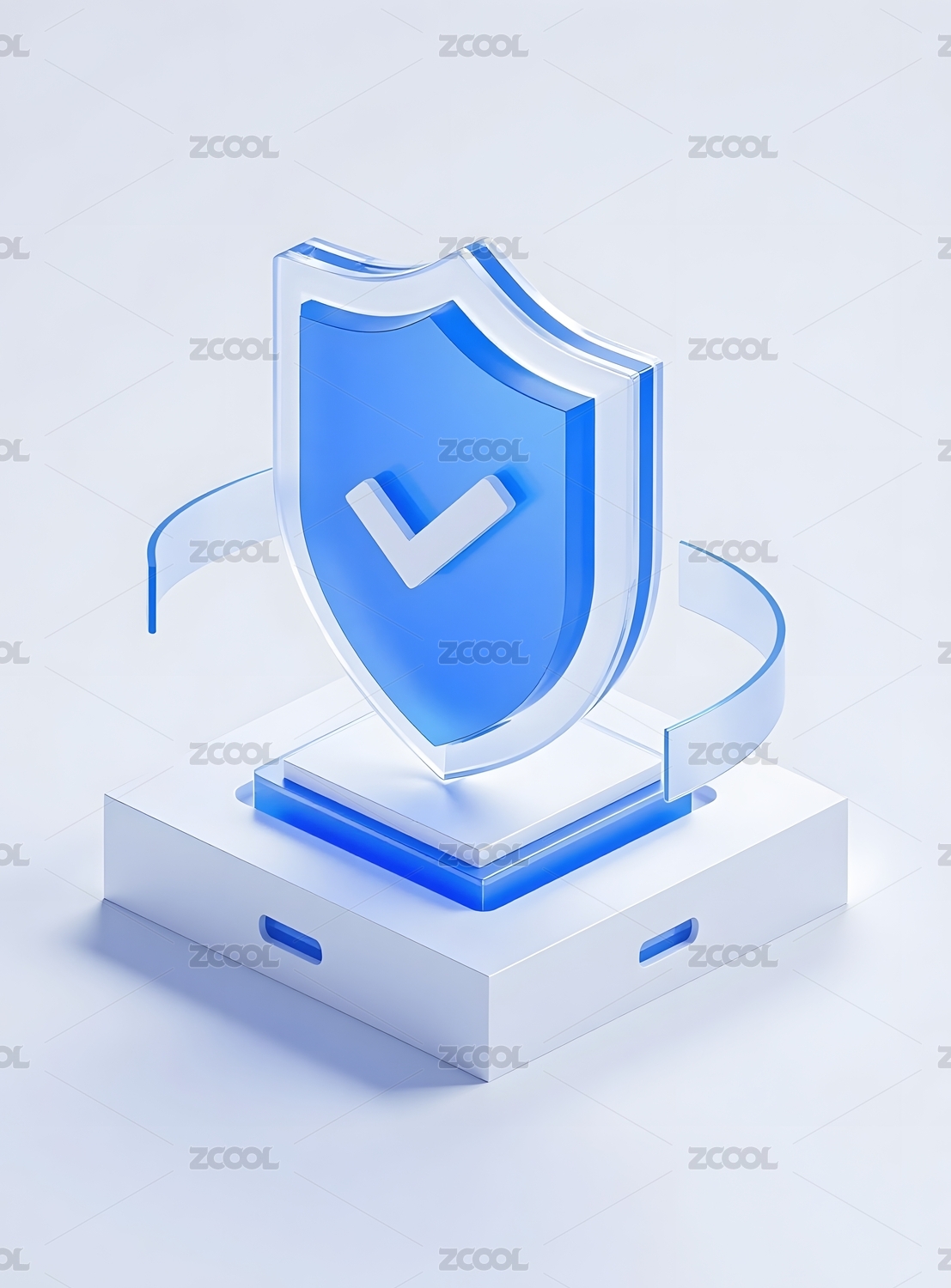 科技感3D蓝色毛玻璃质感盾牌图标