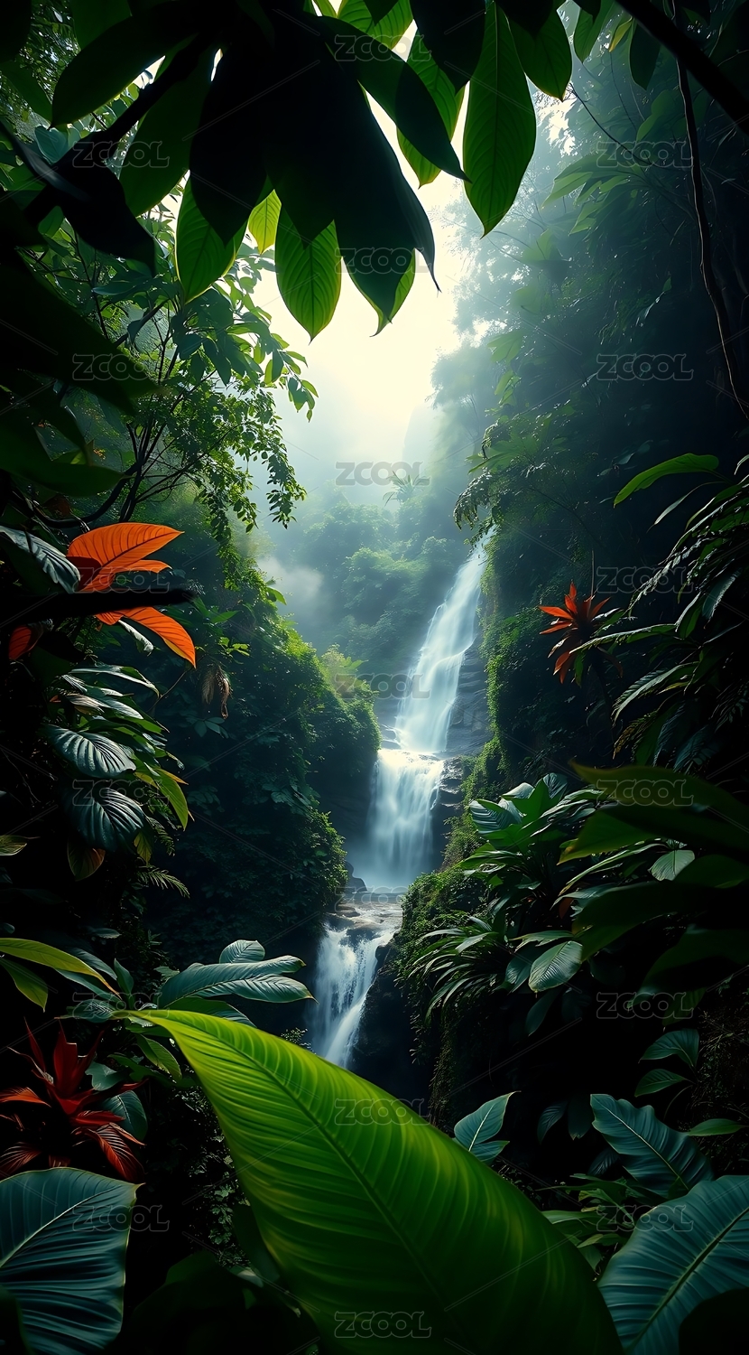 瀑布森林仙境自然奇观