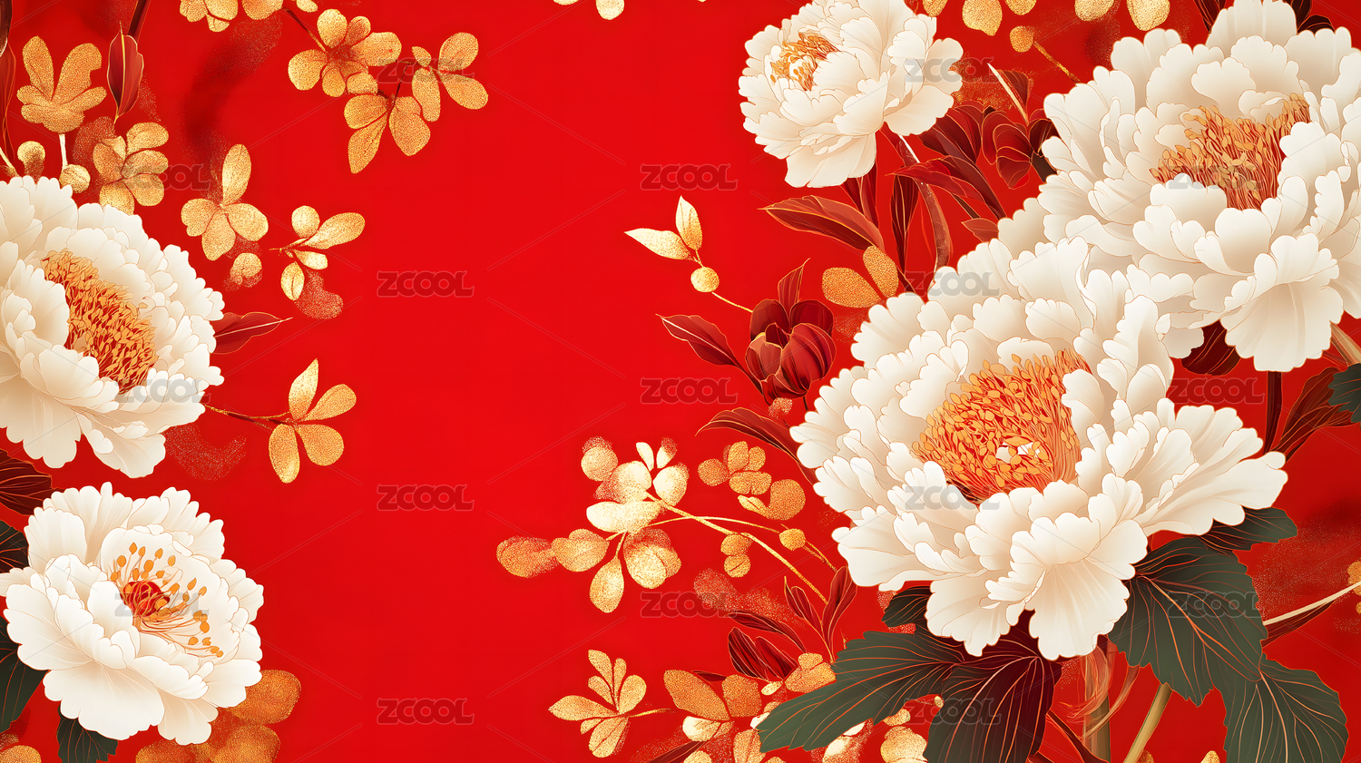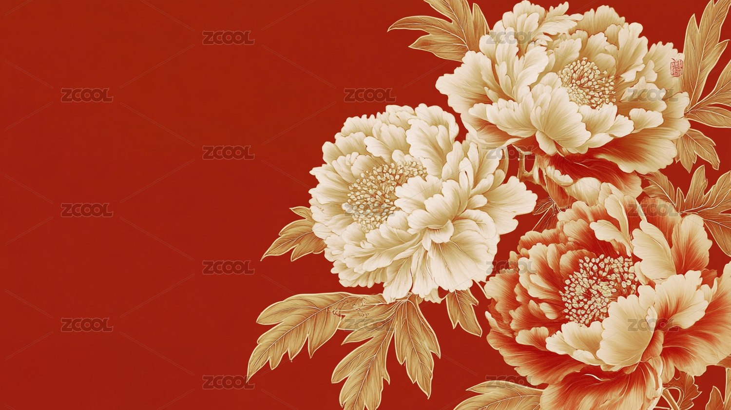 红色中国风牡丹背景