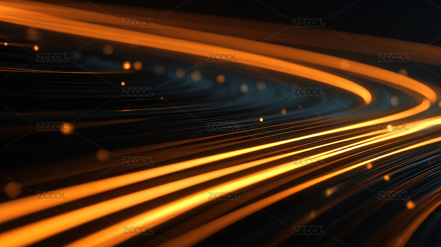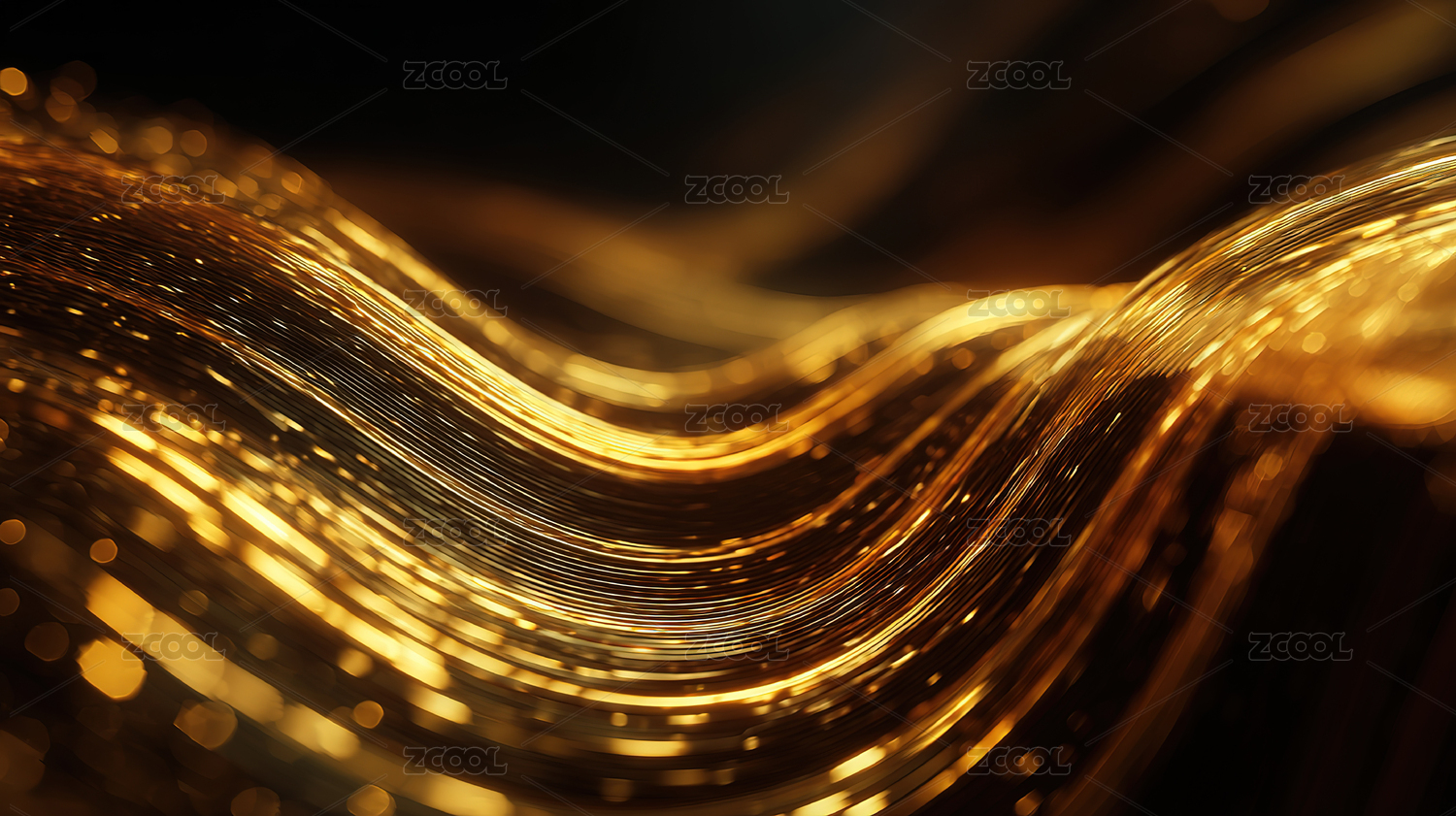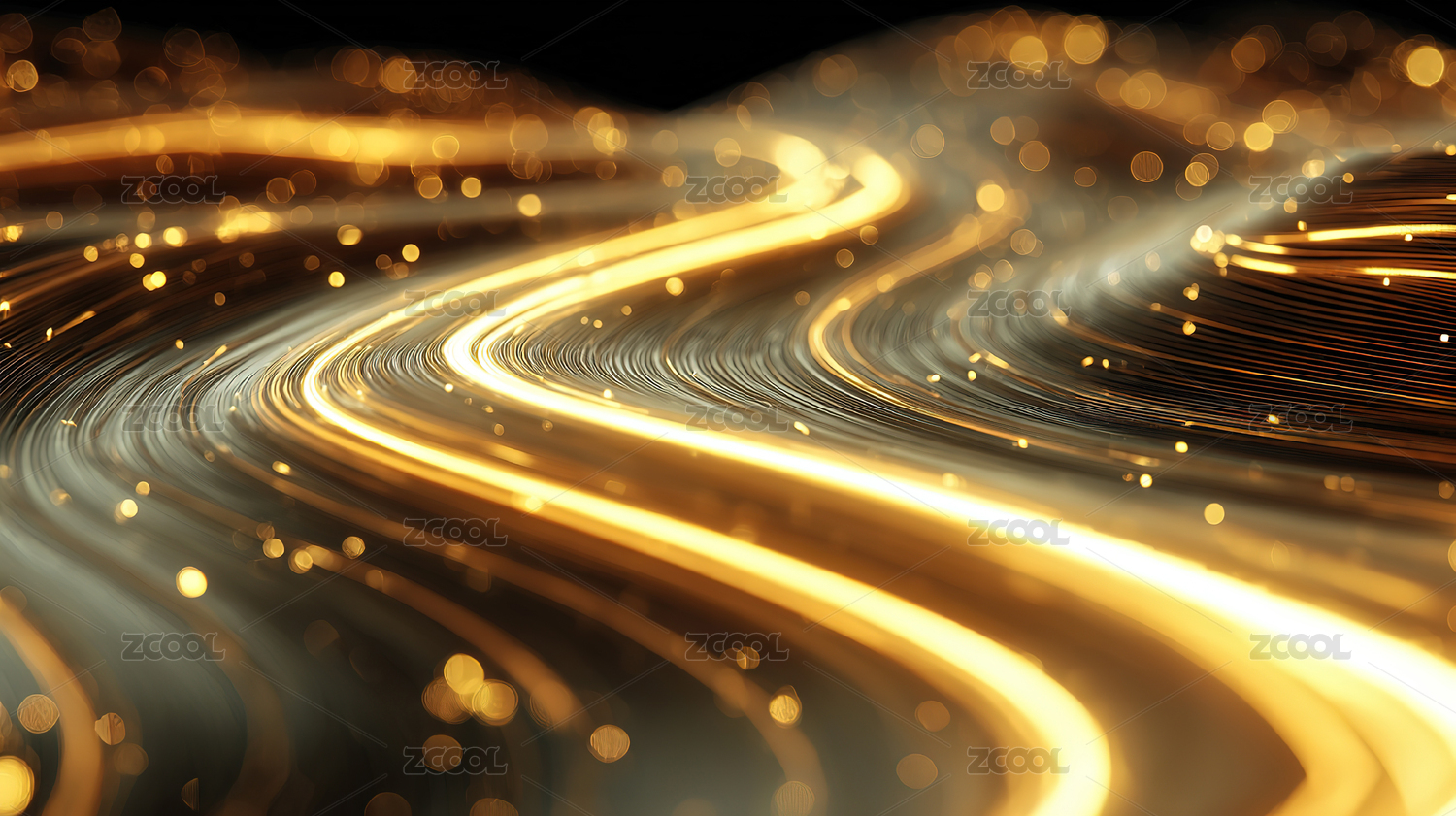 金色光流在黑暗中划出流动轨迹的抽象艺术画
