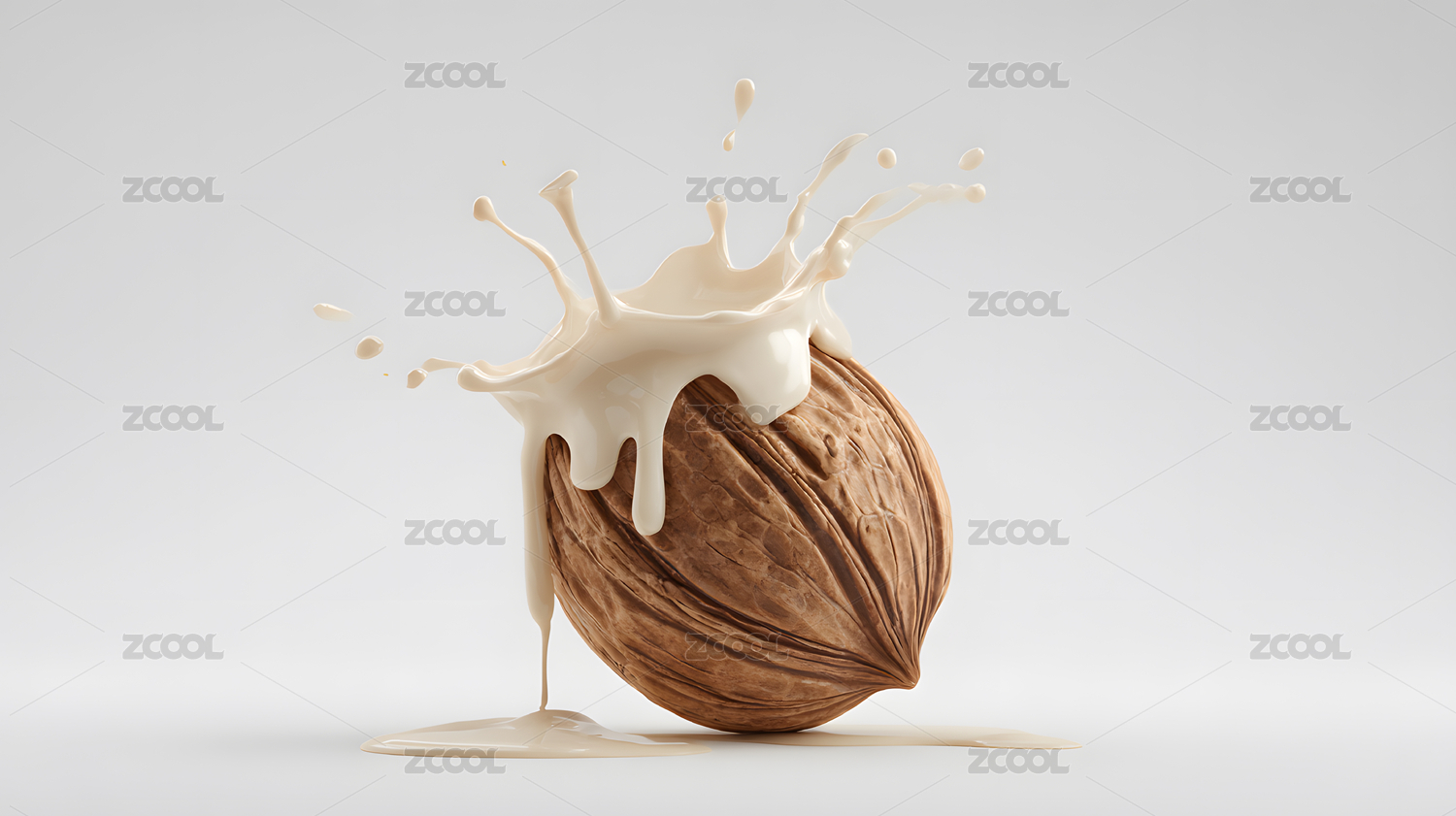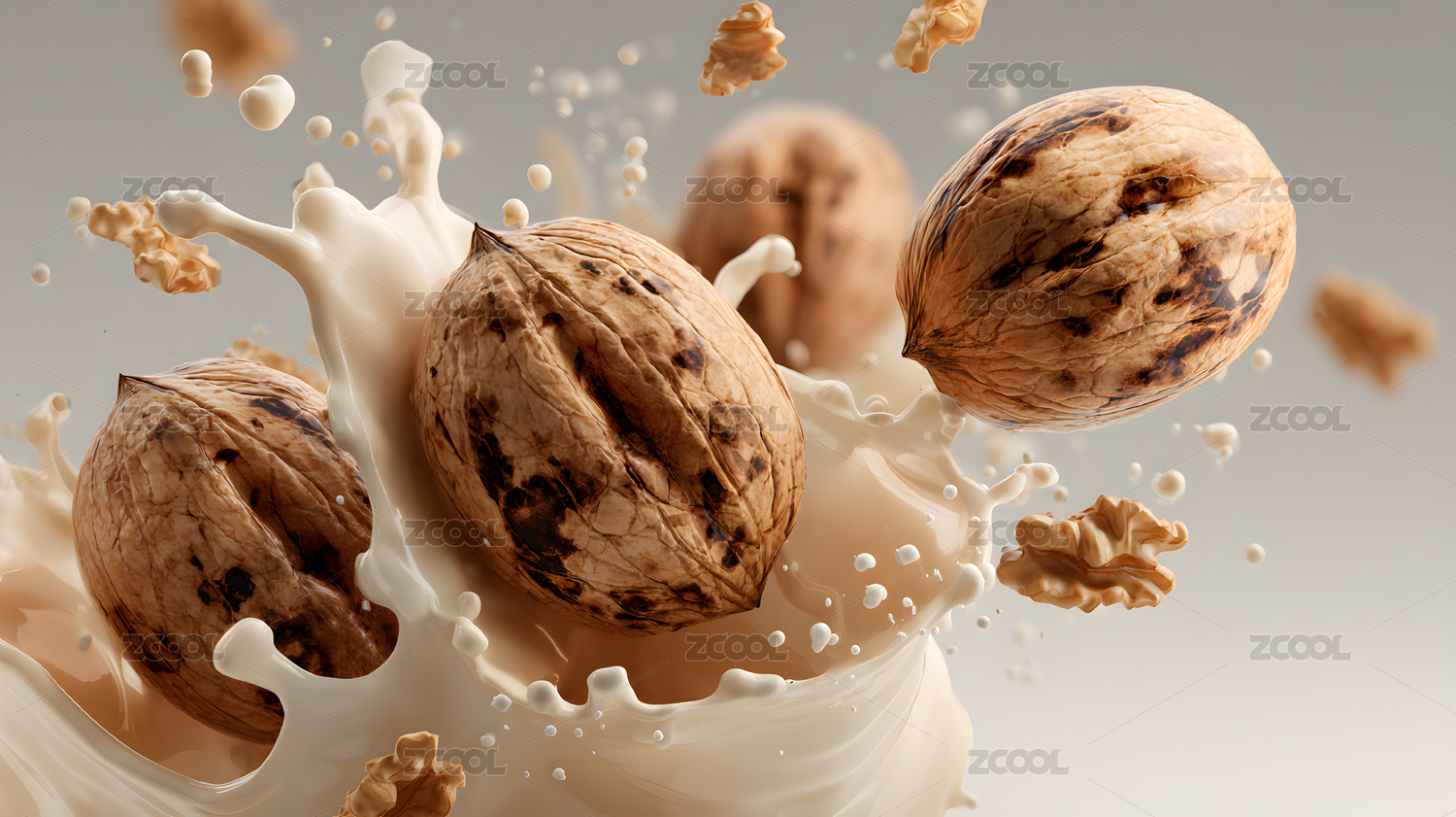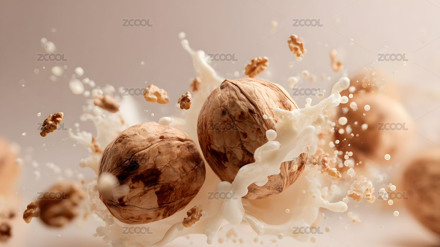 核桃溅起牛奶画面