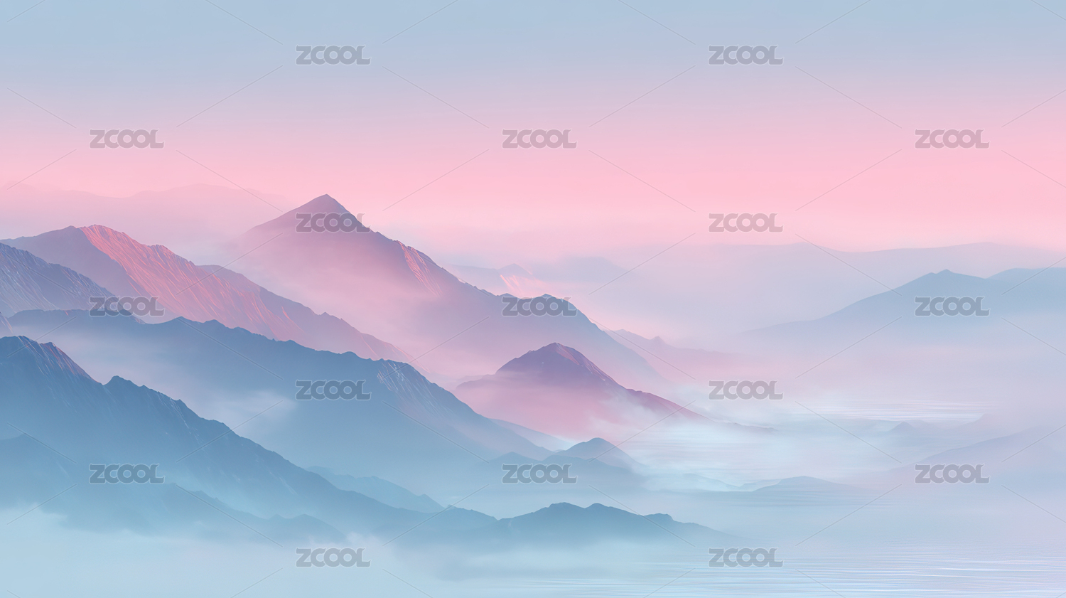 粉色山脉云雾景色