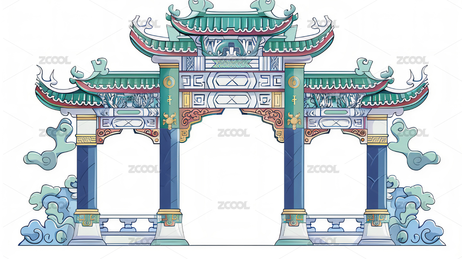 冷色系创意牌楼插画