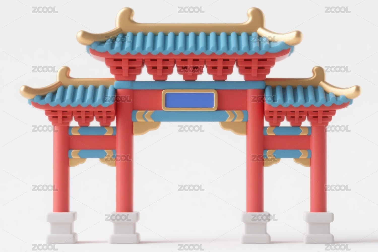 卡通3D古建筑牌坊模型元素