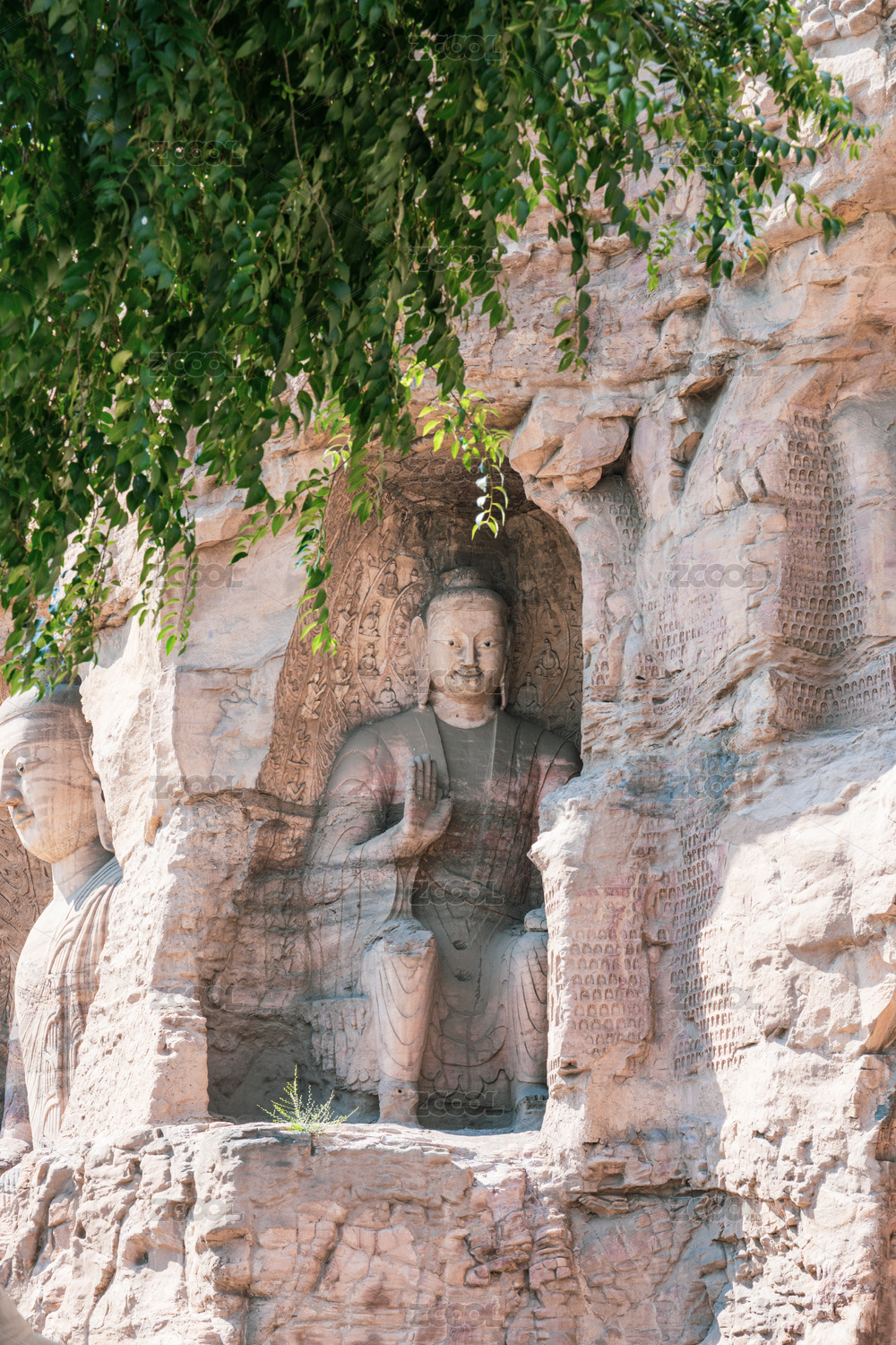 中国山西省大同市西郊武周山云冈石窟精美佛教造像