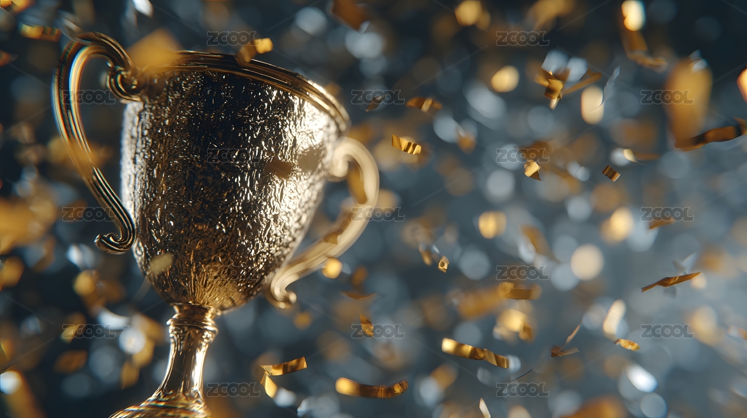 金色奖杯与彩带庆祝场景