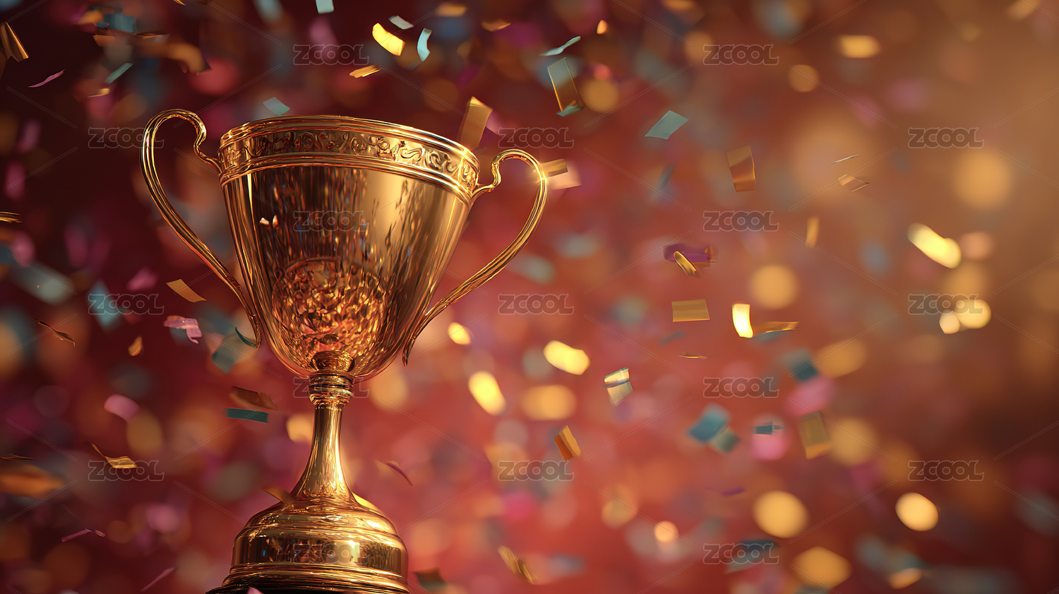 金色奖杯与彩色纸屑