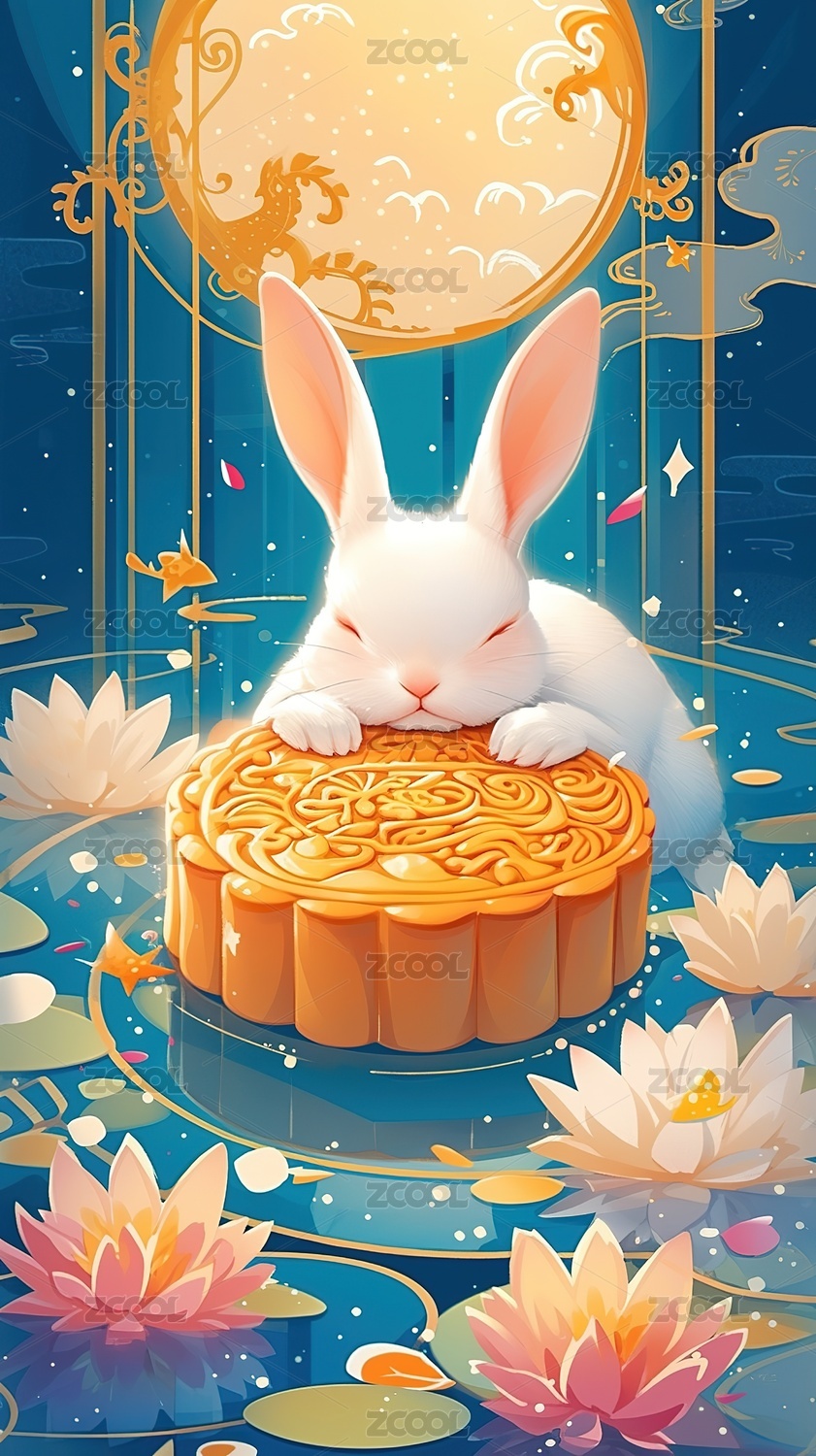 中秋节,玉兔,月饼,插画,背景,壁纸,传统