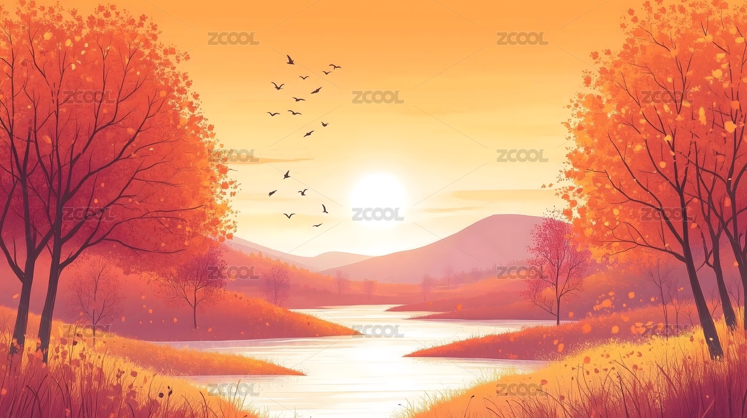 秋季插画自然风景
