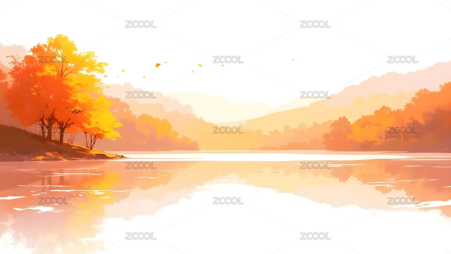 秋日河畔水彩画