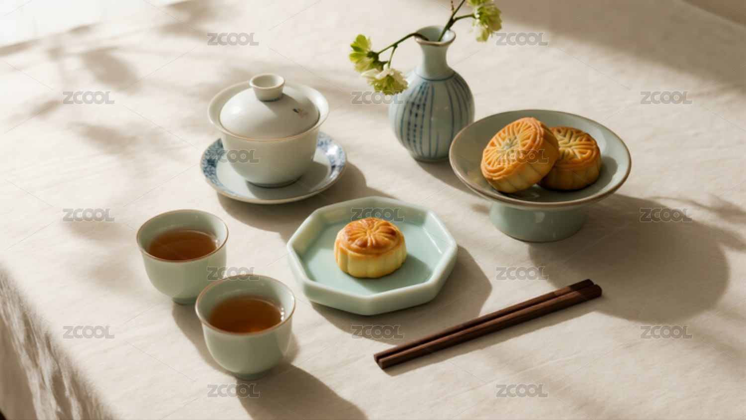 茶艺,雅致,中式,点心,茶具,桌布,树枝,室内,插画,背景
