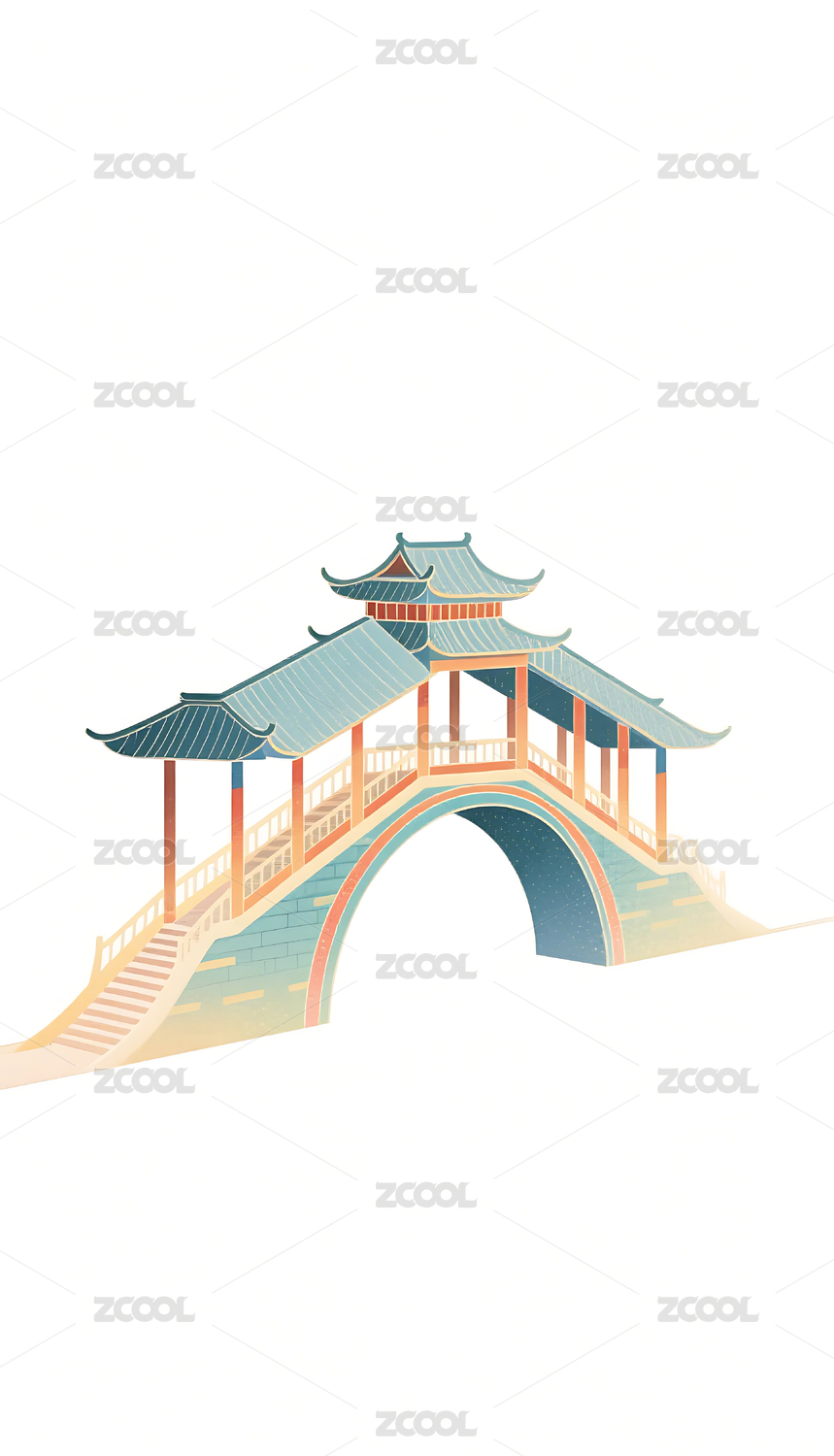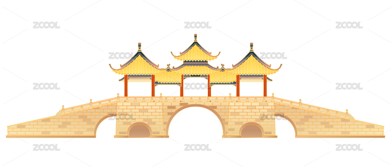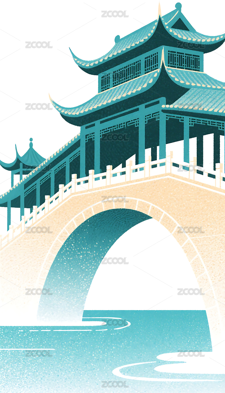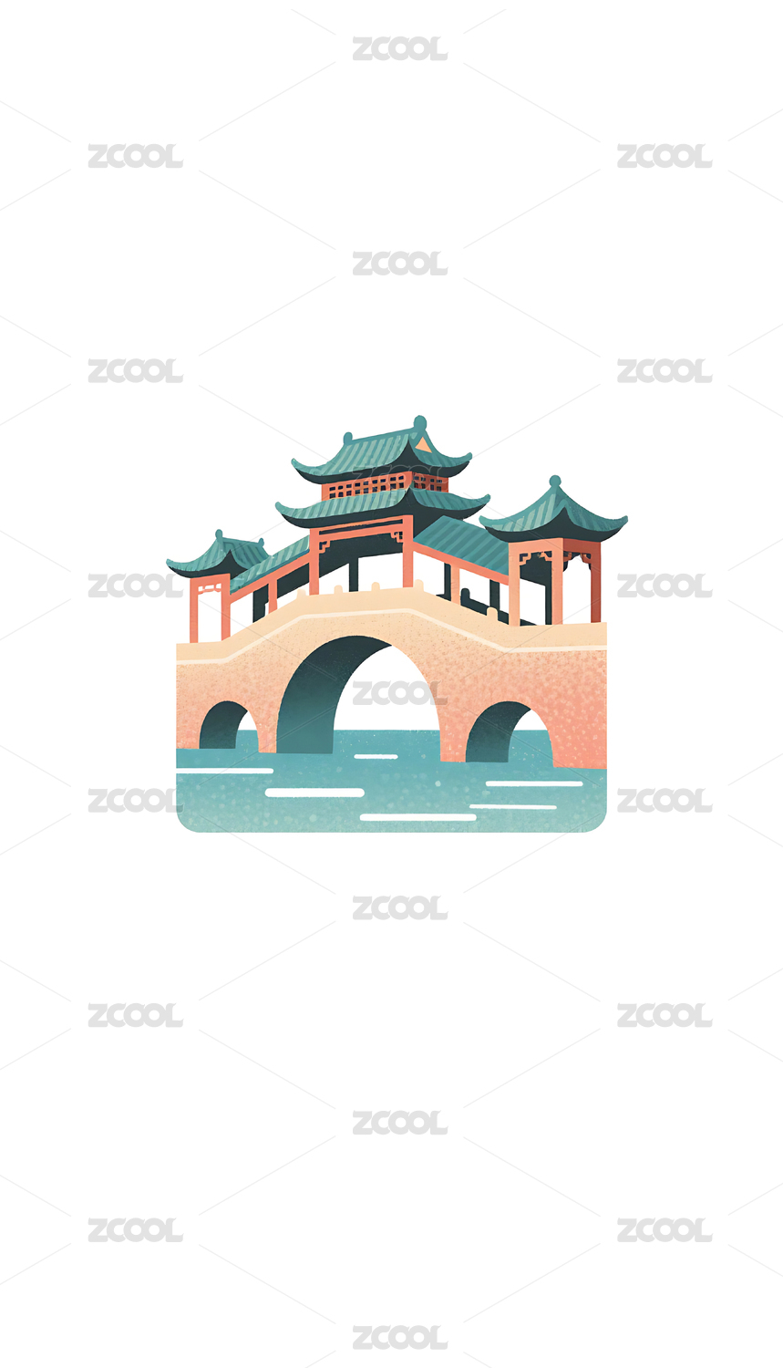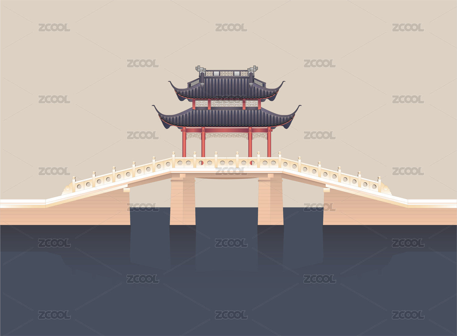 浙江杭州西湖玉带晴虹桥矢量插画设计素材