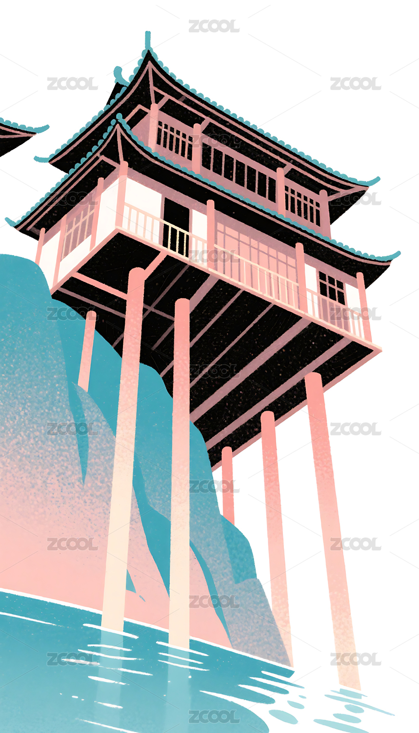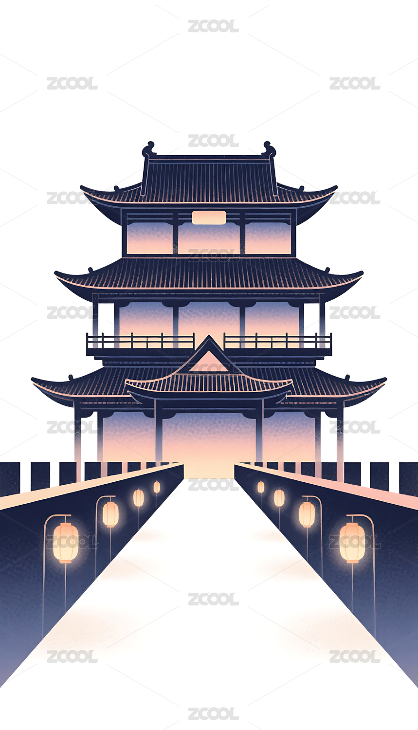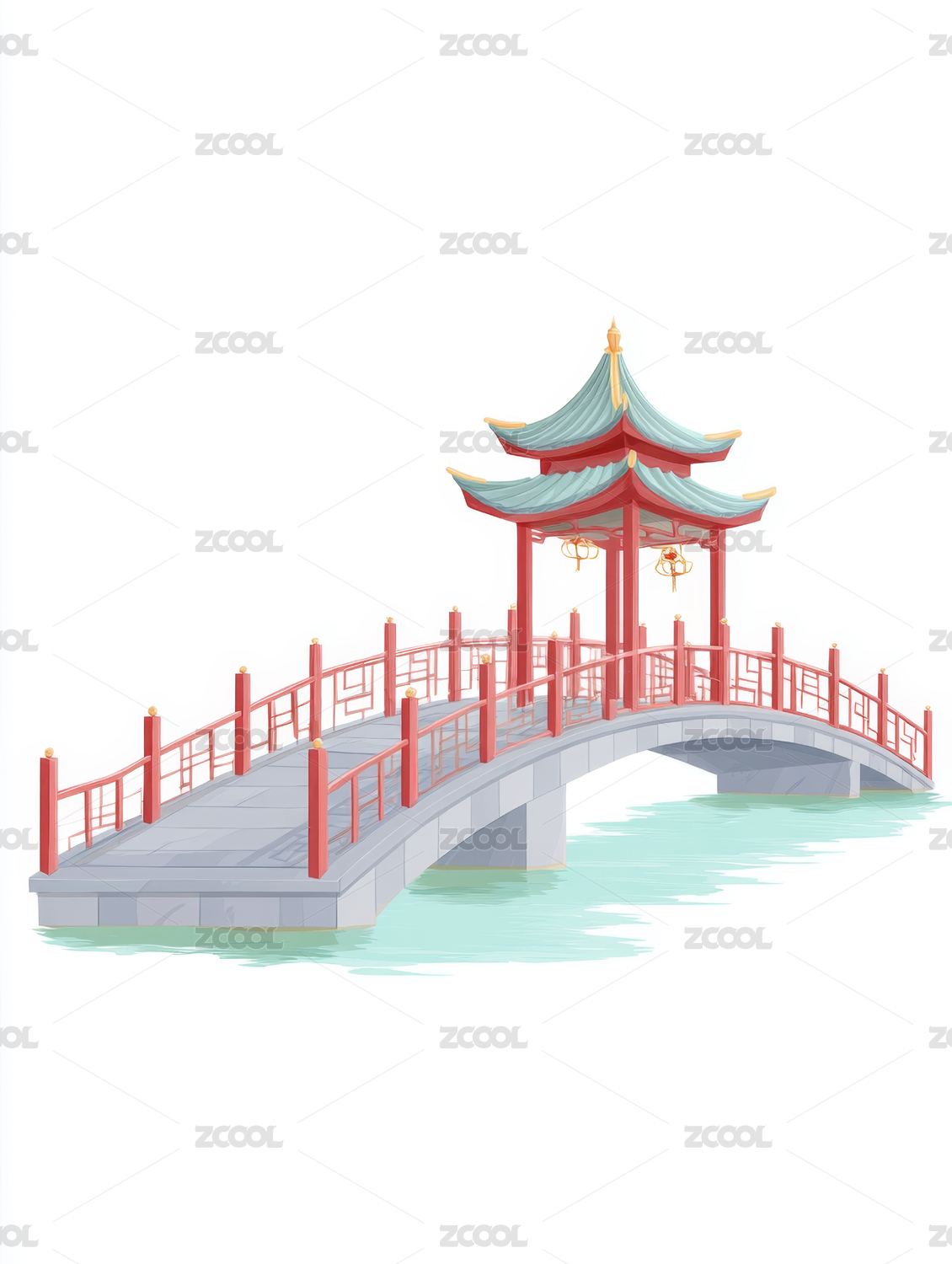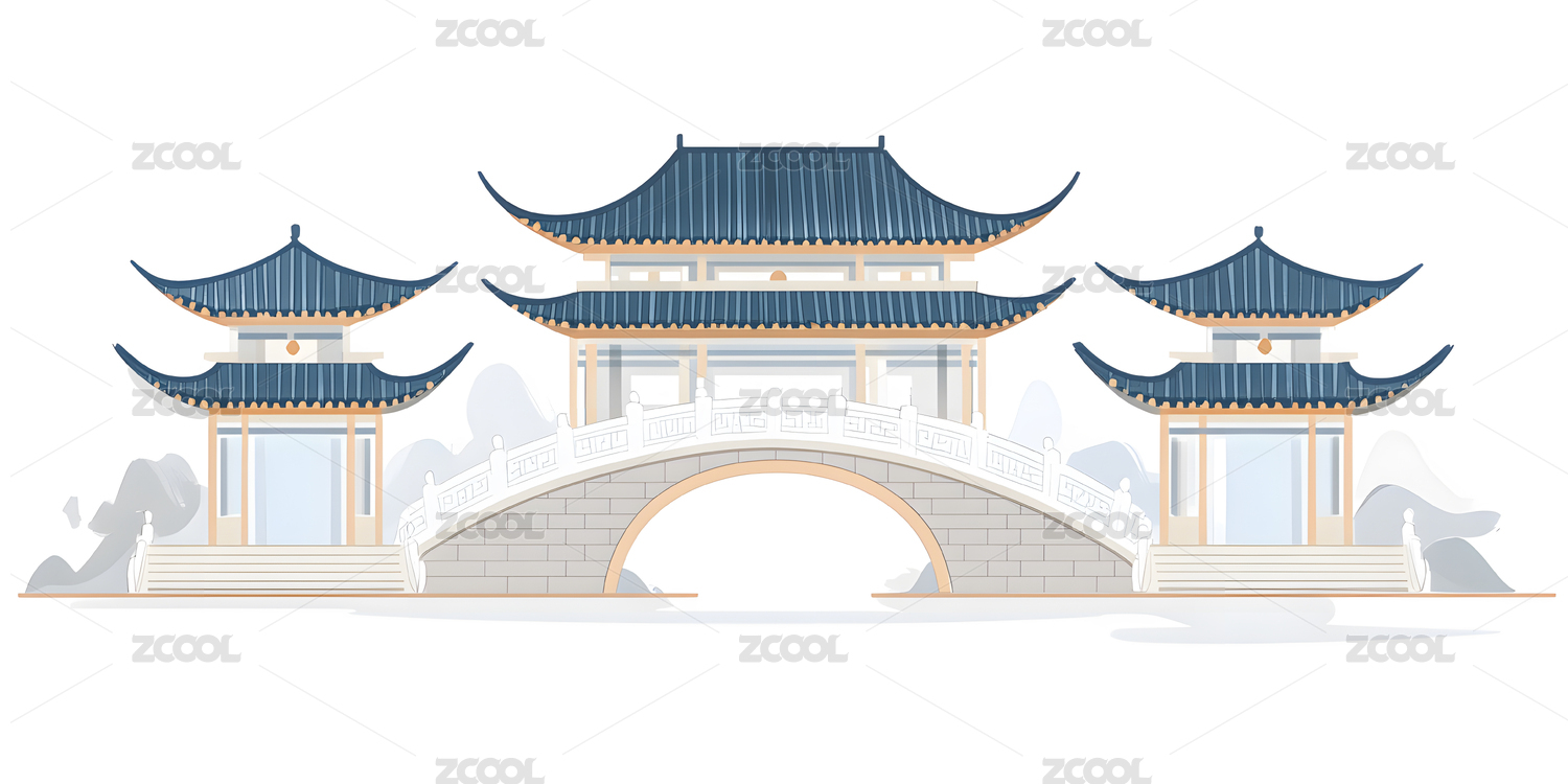 浙江杭州西湖玉带晴虹桥矢量插画设计素材