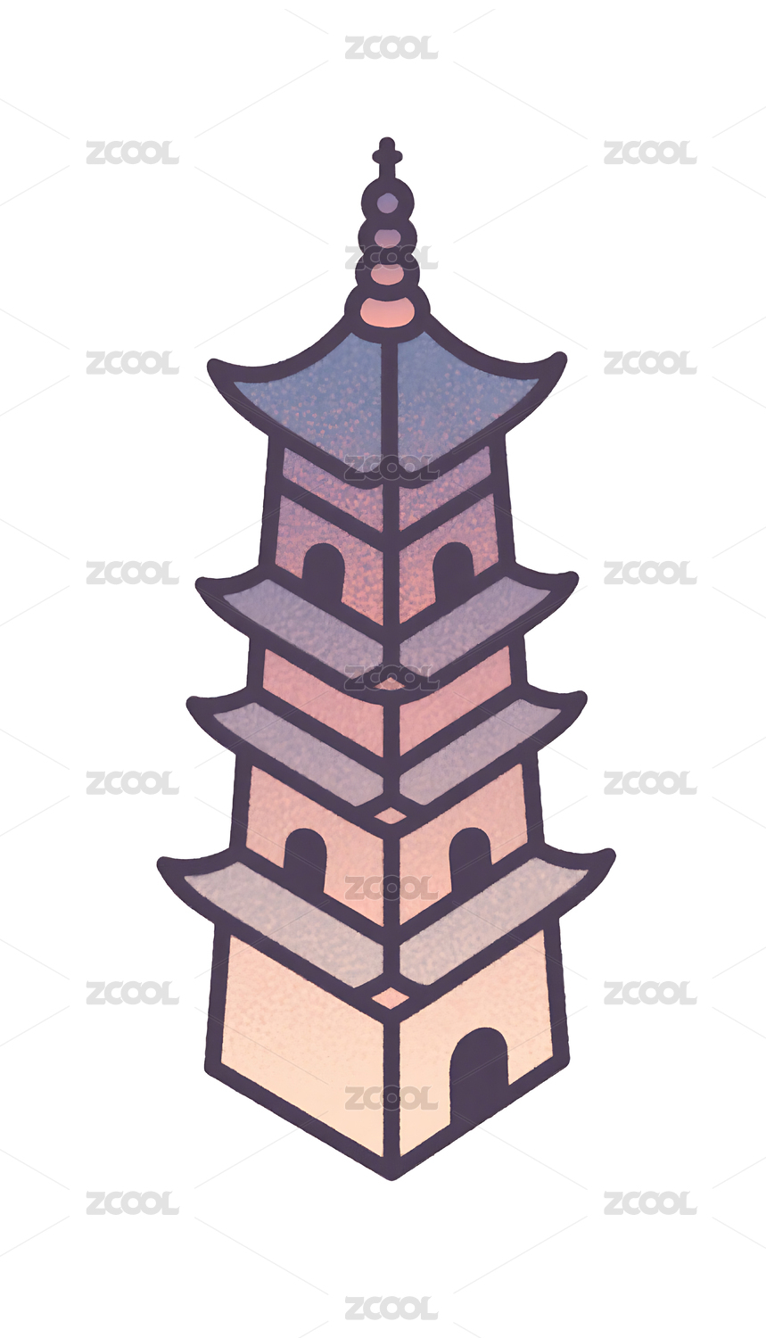 中式,传统,国潮风格,素材,插画,古建筑,塔