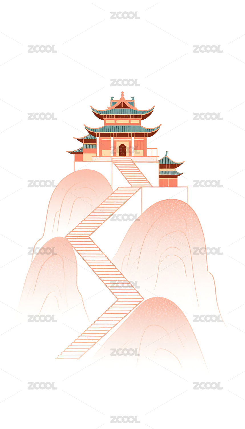 国潮风格古建筑插画素材