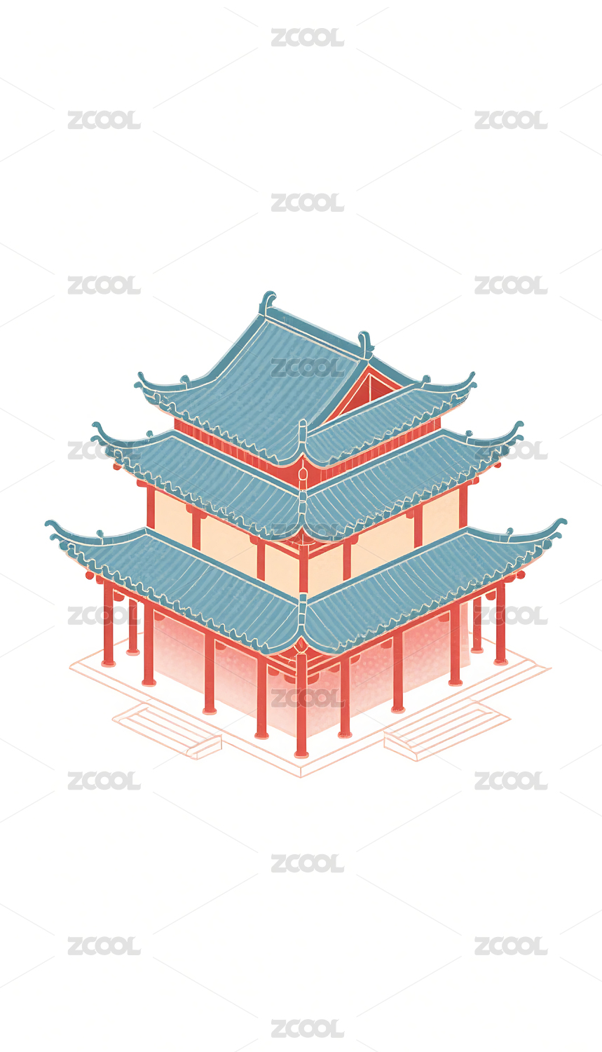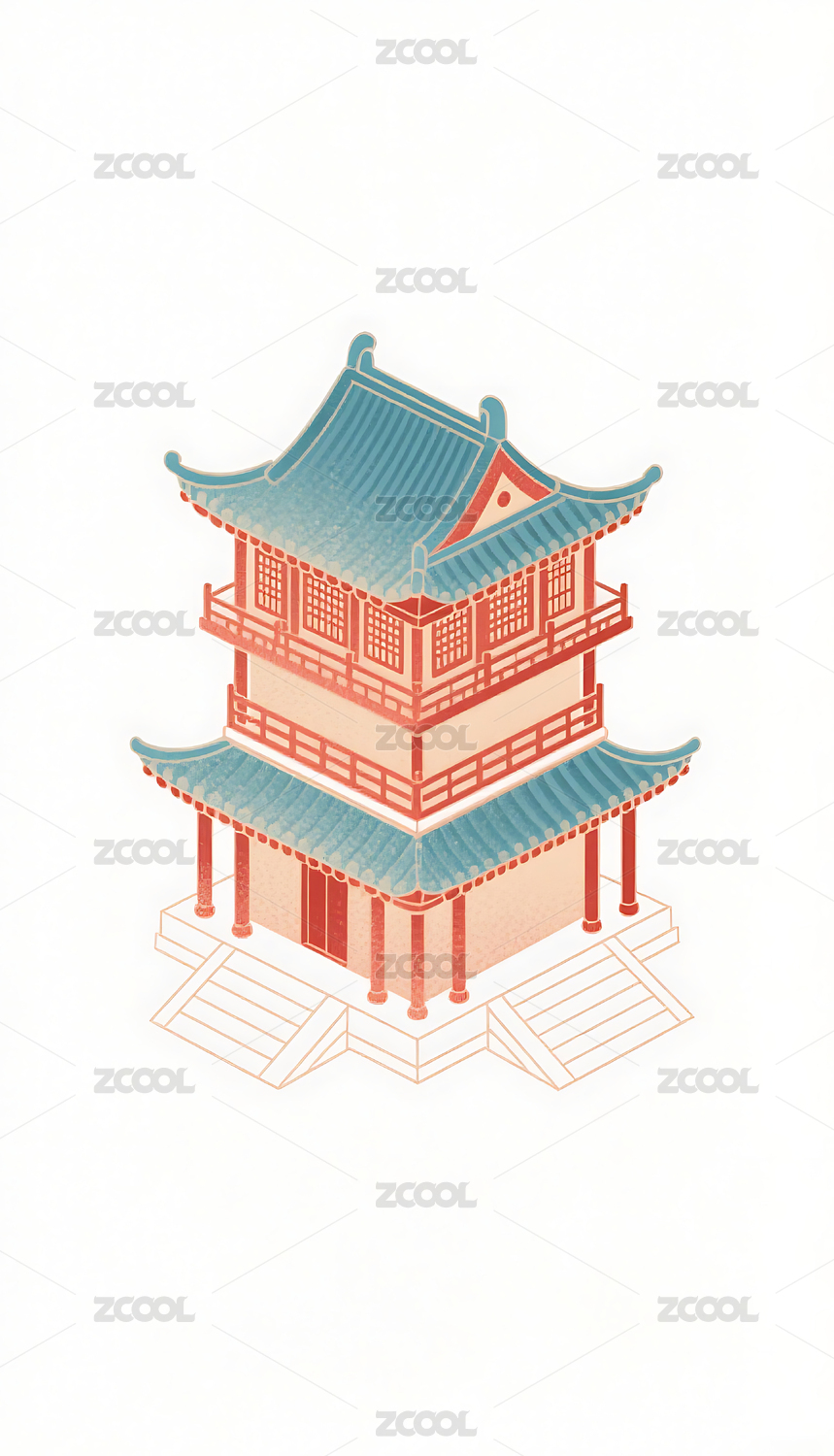 国潮风格古建筑插画素材