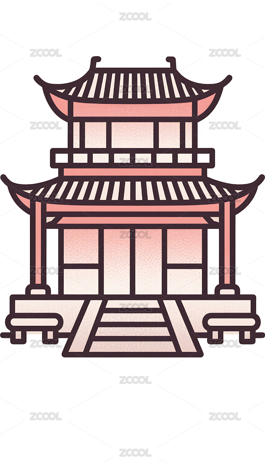 国潮风格中式传统古建筑插画素材