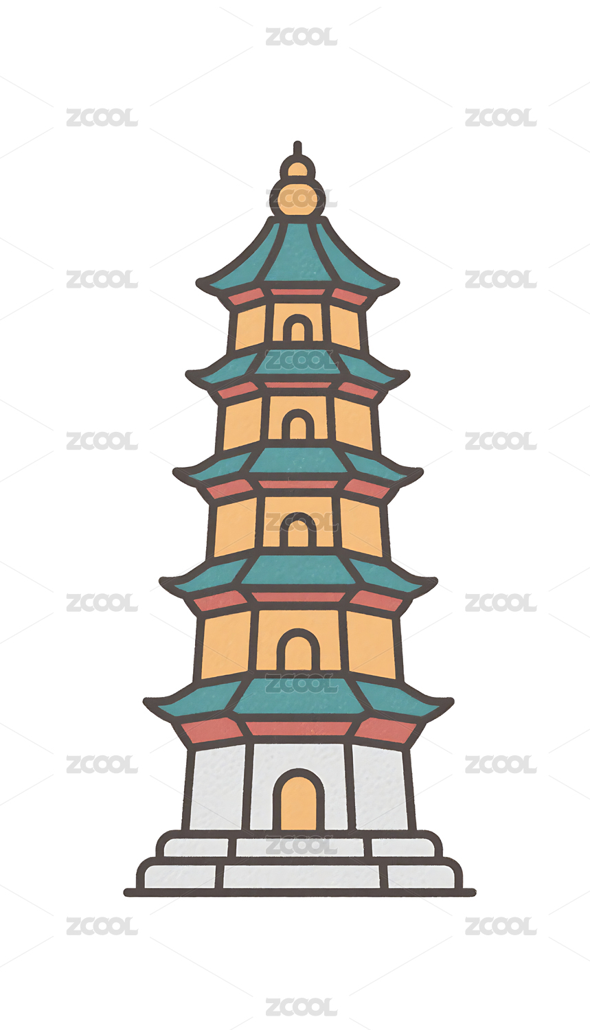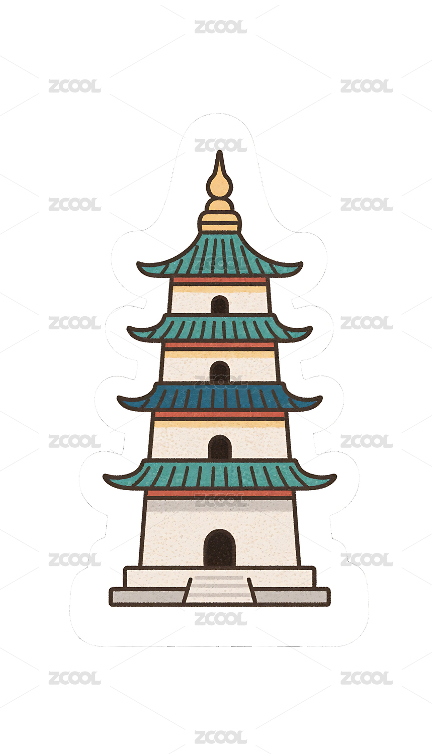国潮卡通风格古建筑石塔插画素材