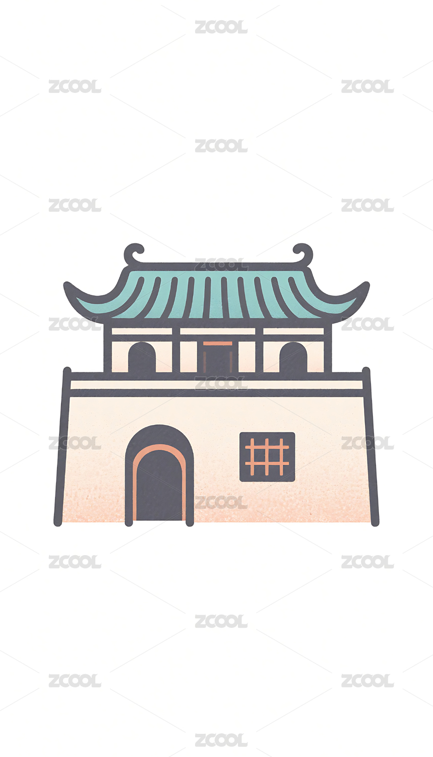 国潮风格卡通古建筑插画素材
