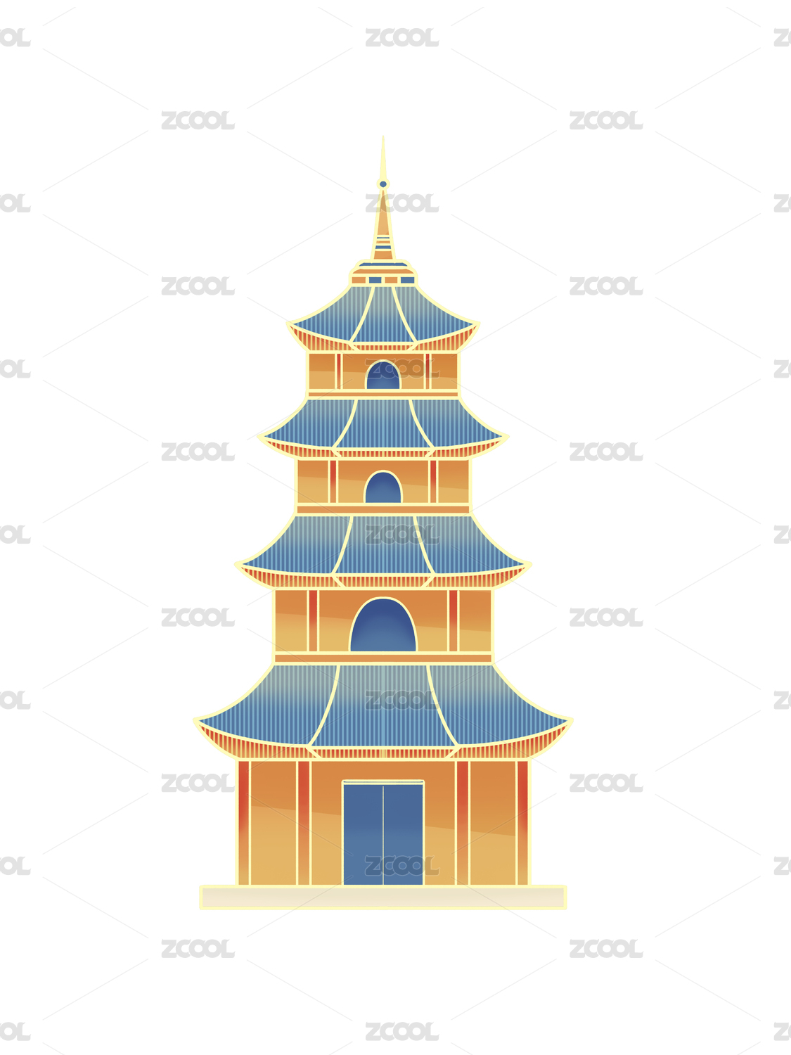 浙江杭州地标西湖雷峰塔矢量插画设计素材
