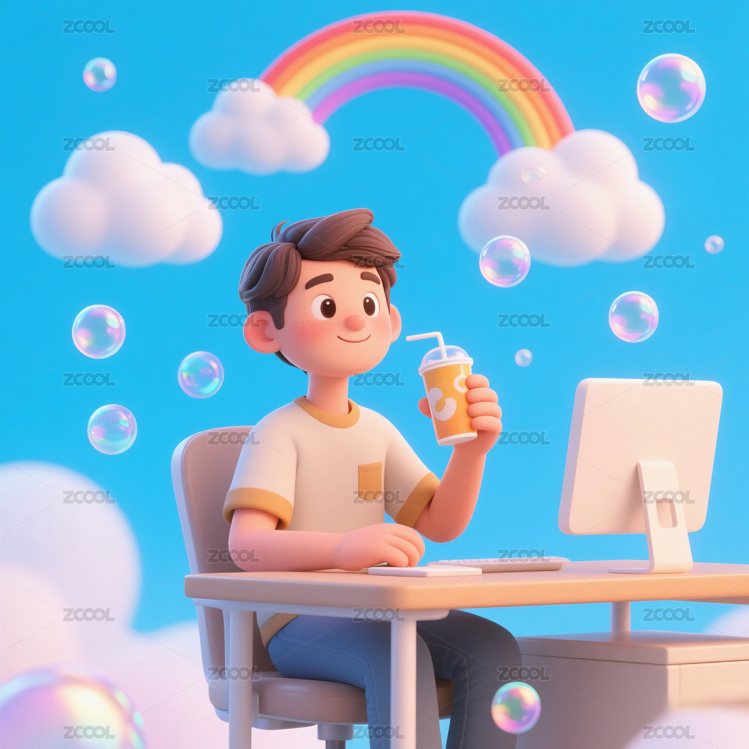 彩虹,云朵,白云,泡泡,可爱,萌萌哒,喝软饮,拿软饮,软饮,西装