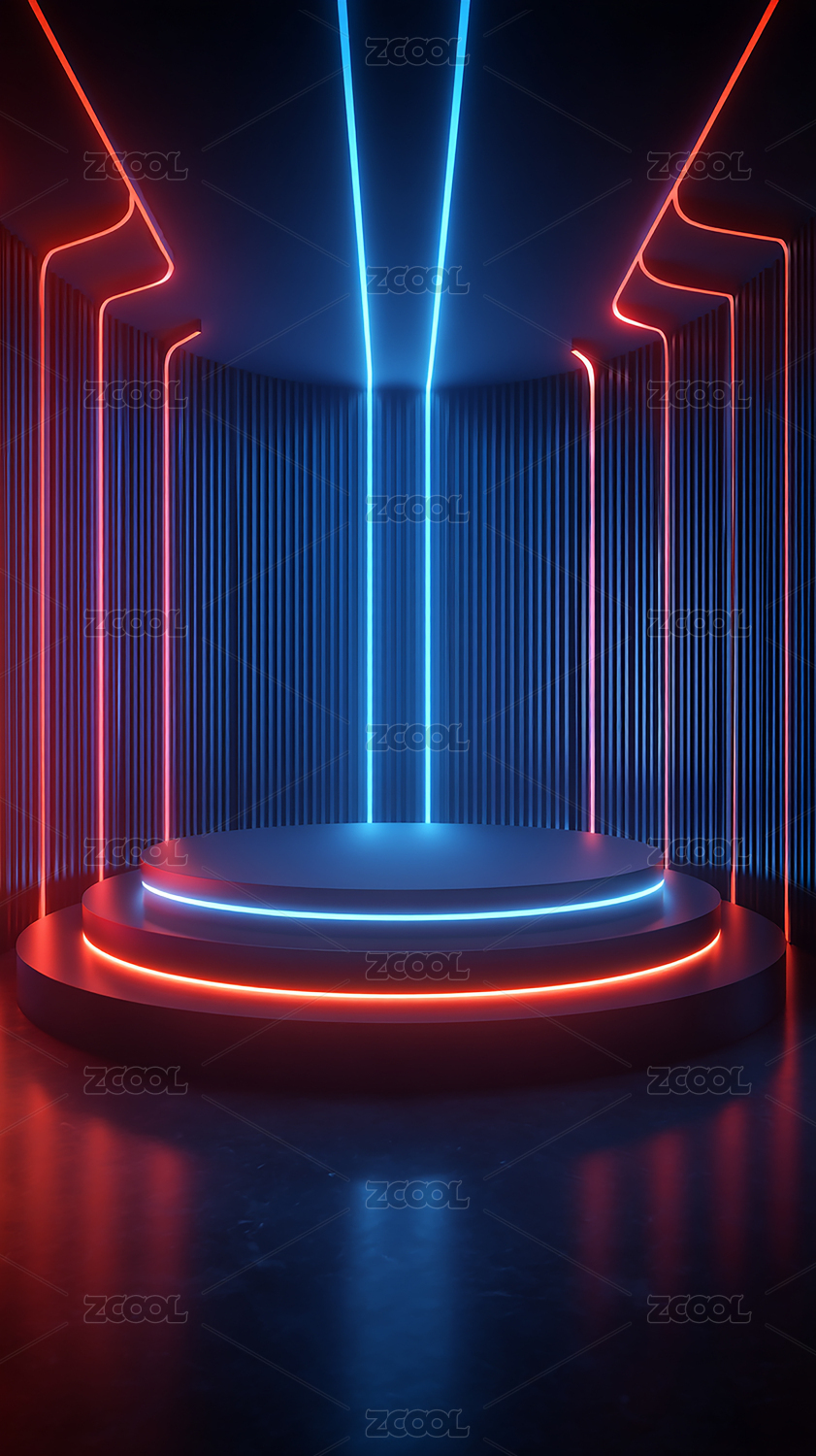 霓虹灯照亮的圆形舞台,科技感十足
