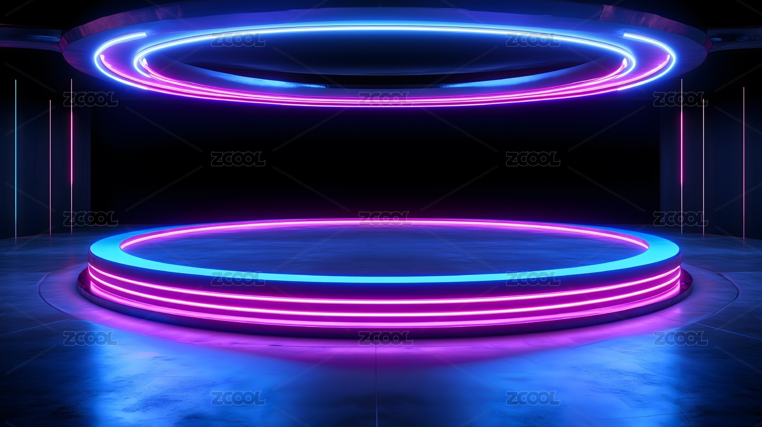 霓虹光圈环绕的圆形平台