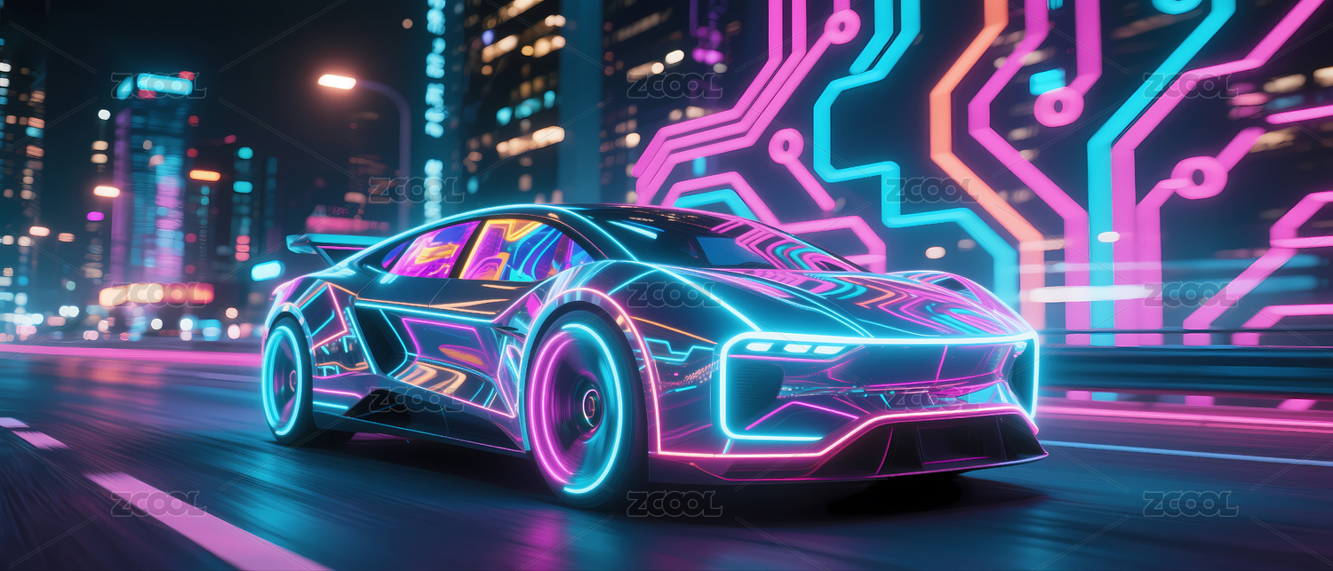 未来城市中的霓虹跑车