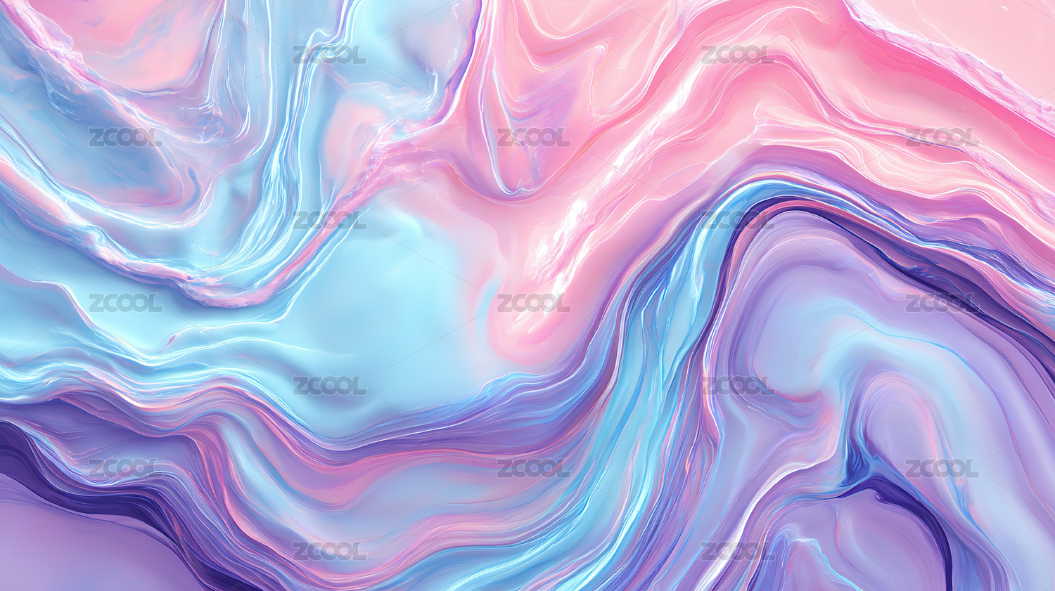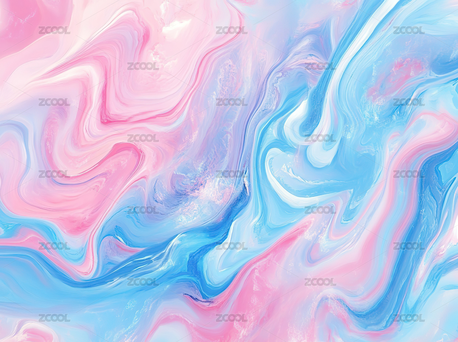 粉色与蓝色流体相互交融呈现抽象美感