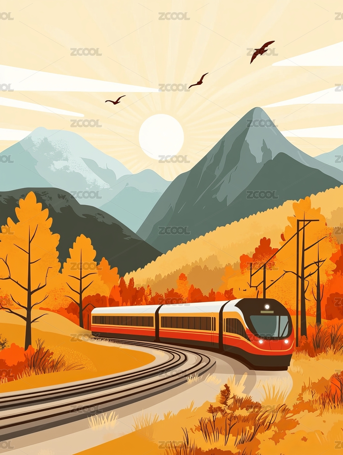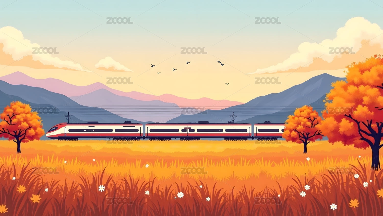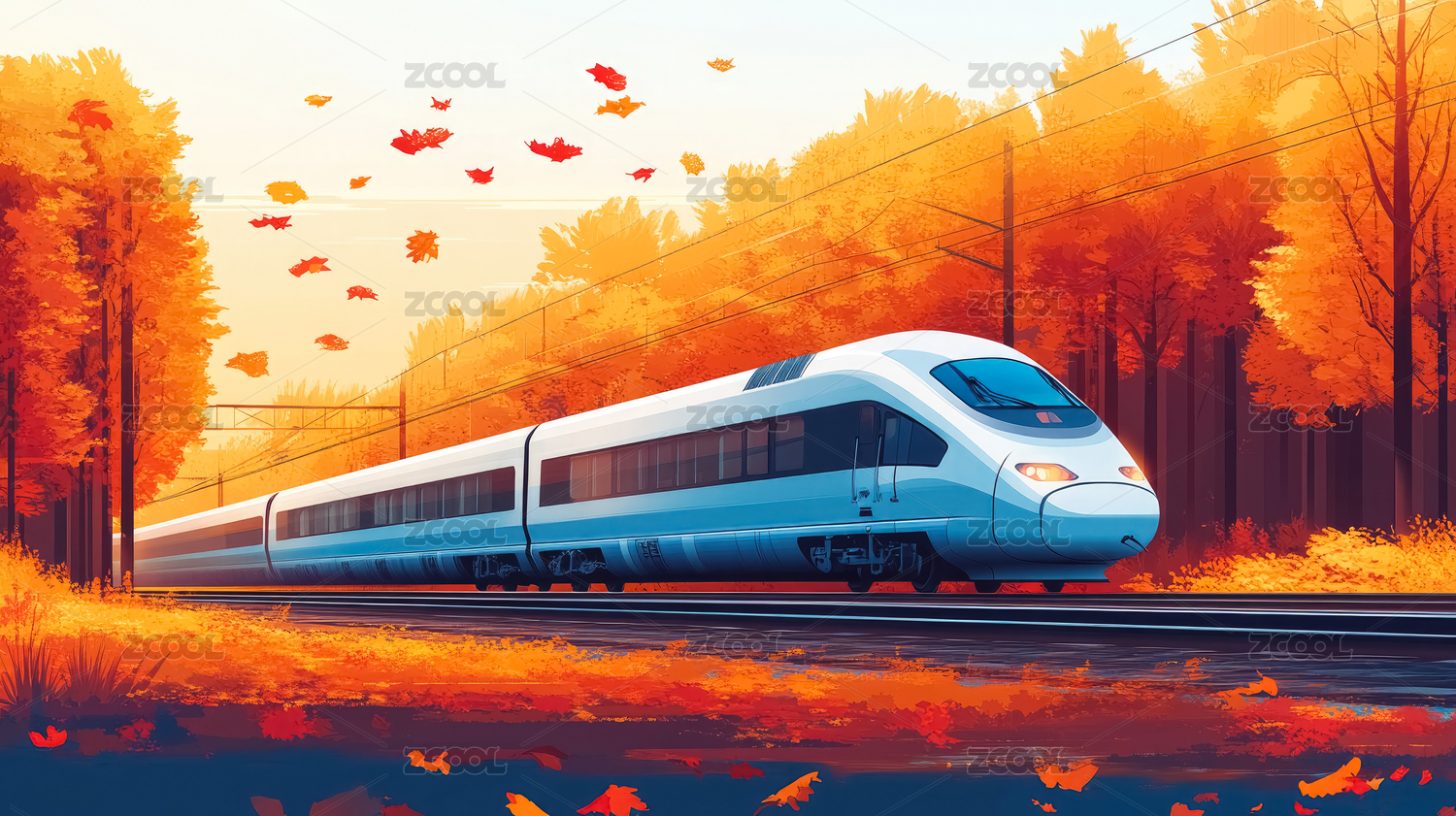 行驶在秋天的高铁列车插画